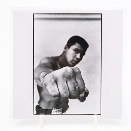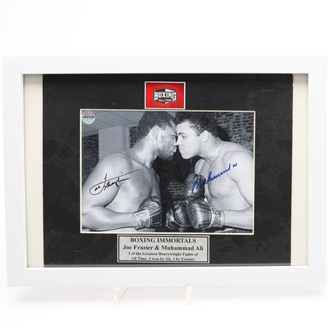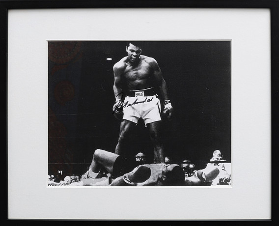 Together with a printed photograph (from the 1966 match between Clay and Brian London, signed by Brian London with gold pen.