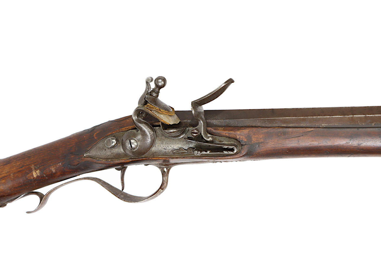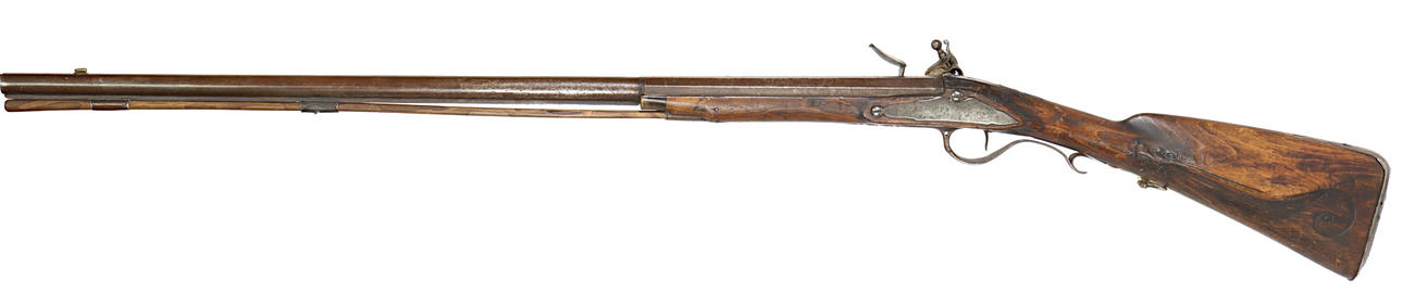 Caliber ca 16mm, barrel length approx. 82 cm, signed lock “Peter Brockman Rostock, wooden piston with piston cap and steel back cap.
