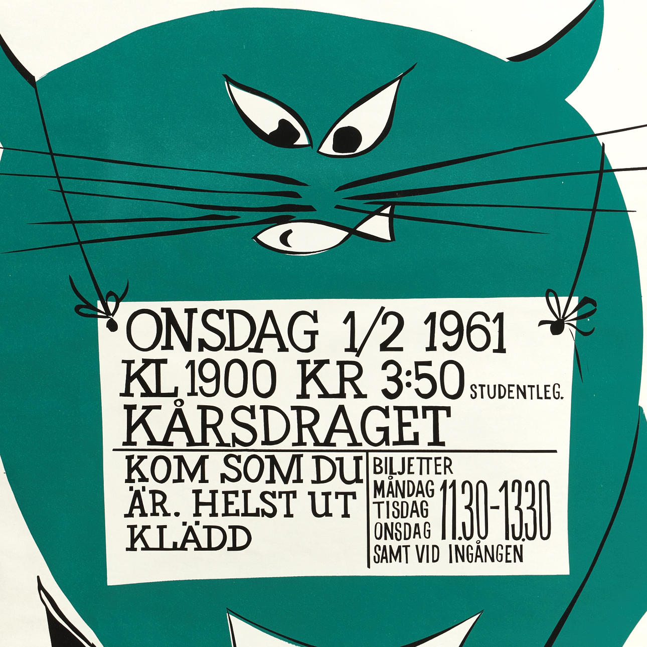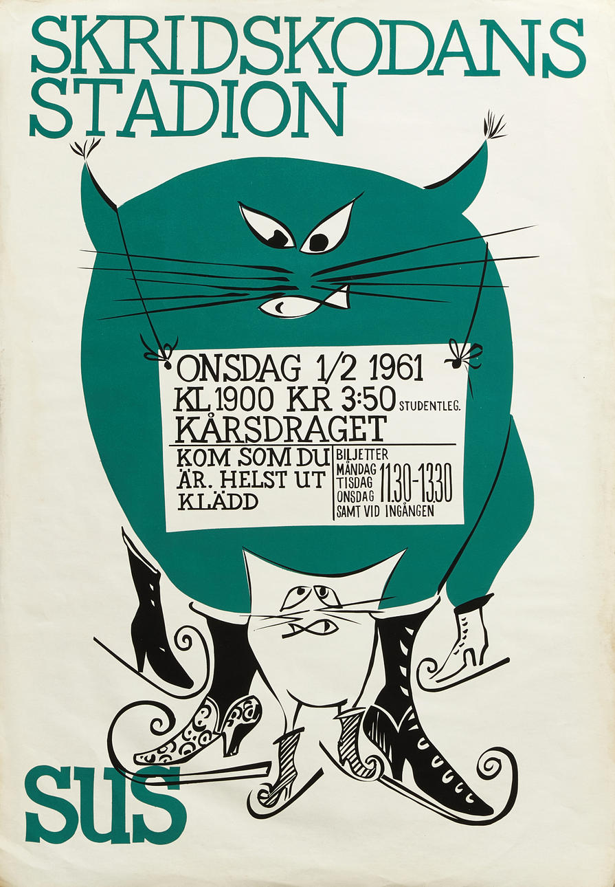 4099544. 7 posters, SUS (Stockholms universitets studentkår), mid 1900s Description Leaf dimensions approx. 75x52.5 cm. Condition report Edge wear and tear, probably taped.