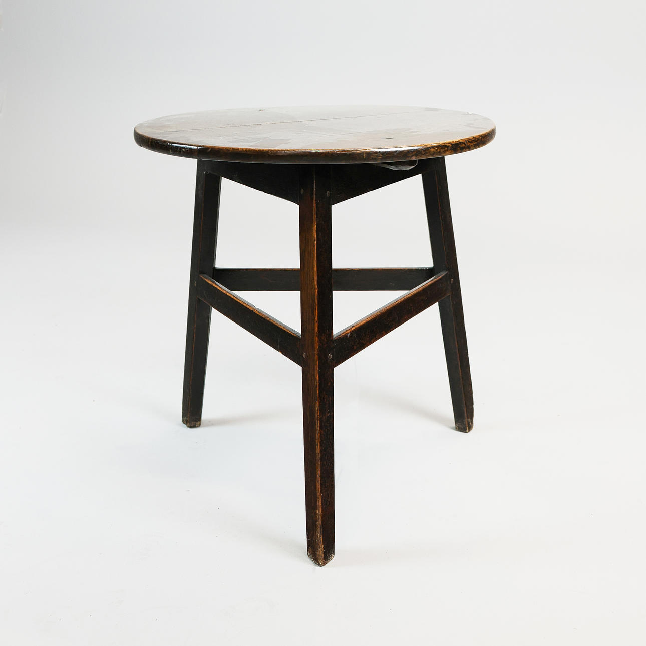AN 18TH CENTURY OAK CRICKET TABLE.