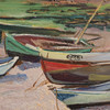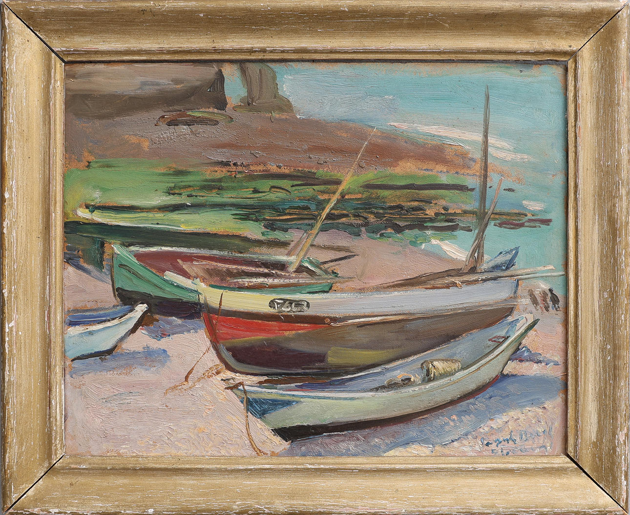 SVANTE BERGH. OIL ON PANEL, BOATS, SIGNED AND DATED 1931.