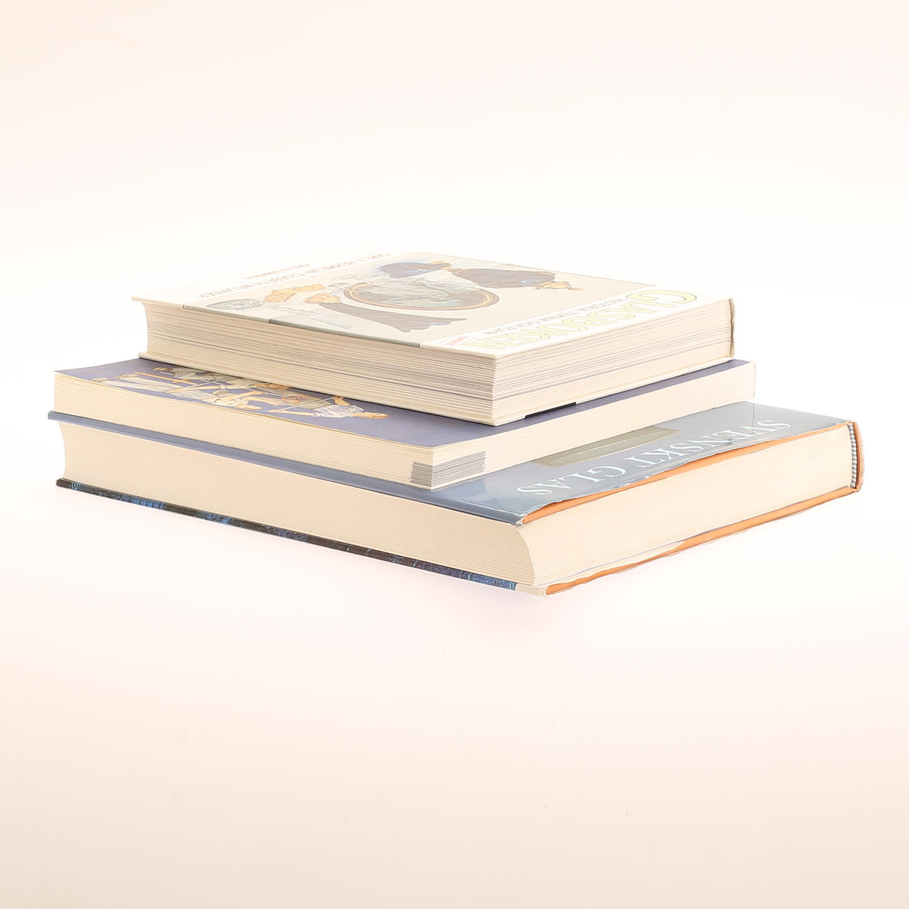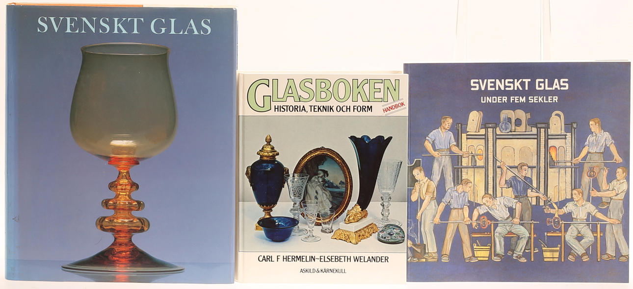 Three books, Swedish glass.