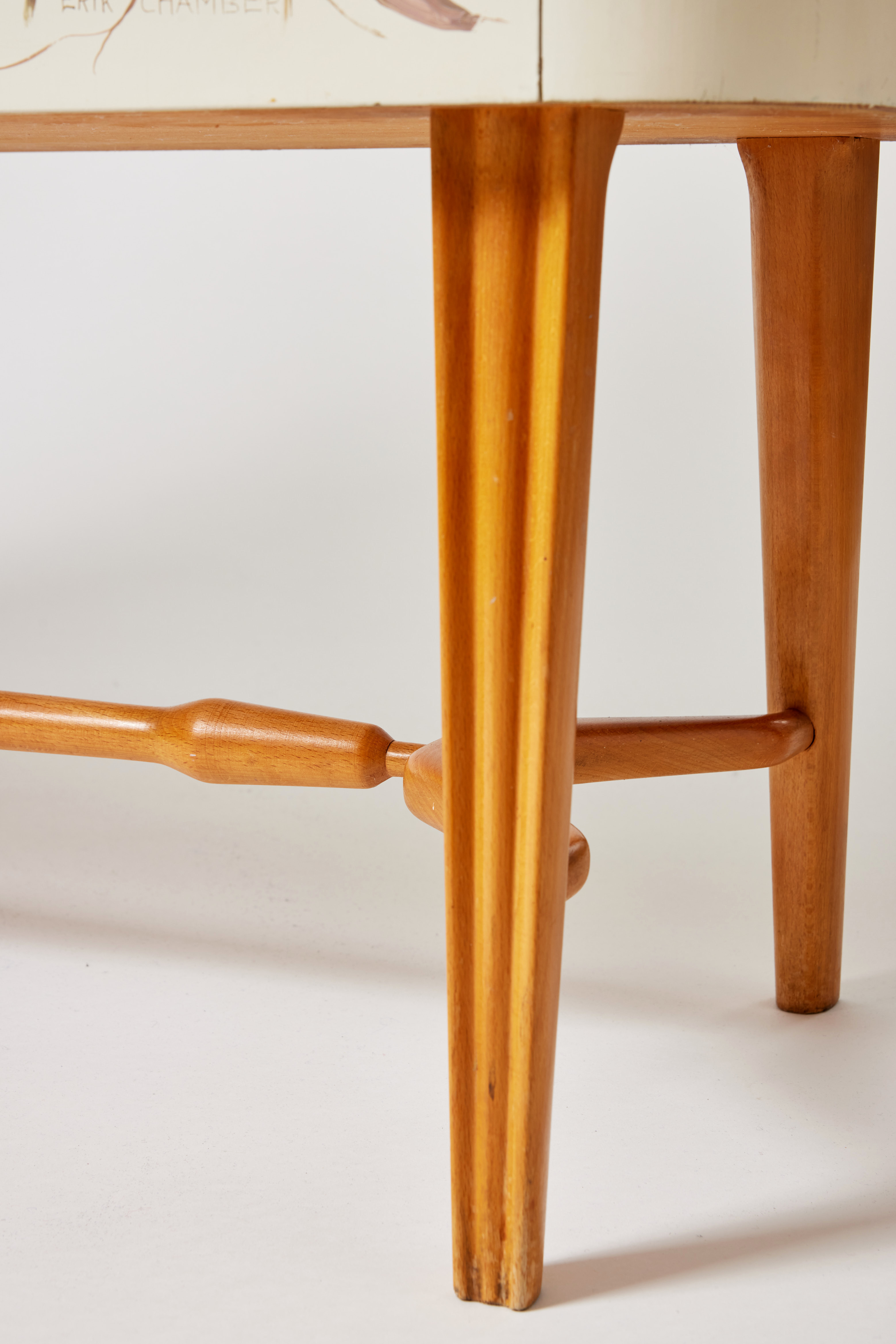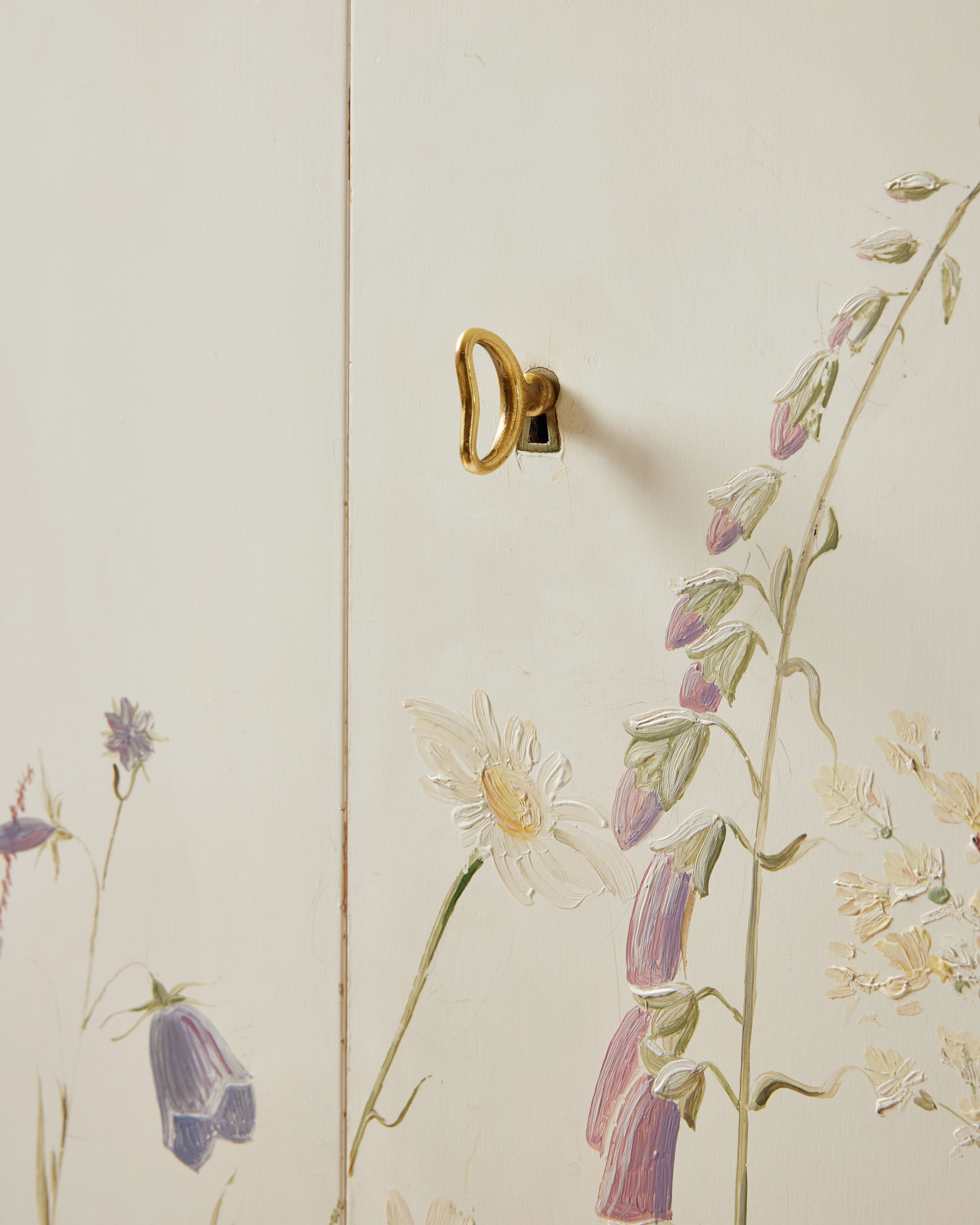 101. 4103416. ERIK CHAMBERT. Cabinet, AB Chamberts Möbelfabrik, Norrköping, 1945, white lacquered with painted decoration of Swedish summer flowers personally executed by Erik Chambert.