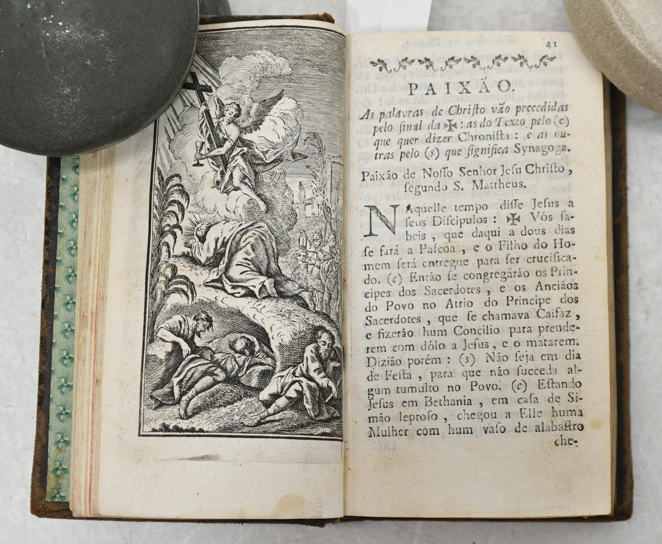 Illustrated in extratexto with 7 page engravings inteira abertas a buril em that the first is assinada by Le Roy. Tem junto registos de santos, entre eles de Nossa Senhora de Fátima e um cartão do cónego José Ferreira Governo. As páginas finais contêm o índice geral, o privilégio de D. Maria I (30-08-1791), e o índice com a colocação das estampas. Fr. Francisco de Jesus Maria Sarmento, (Vila de Seixo, Coimbra, 1713 - Lisbon, 1790).