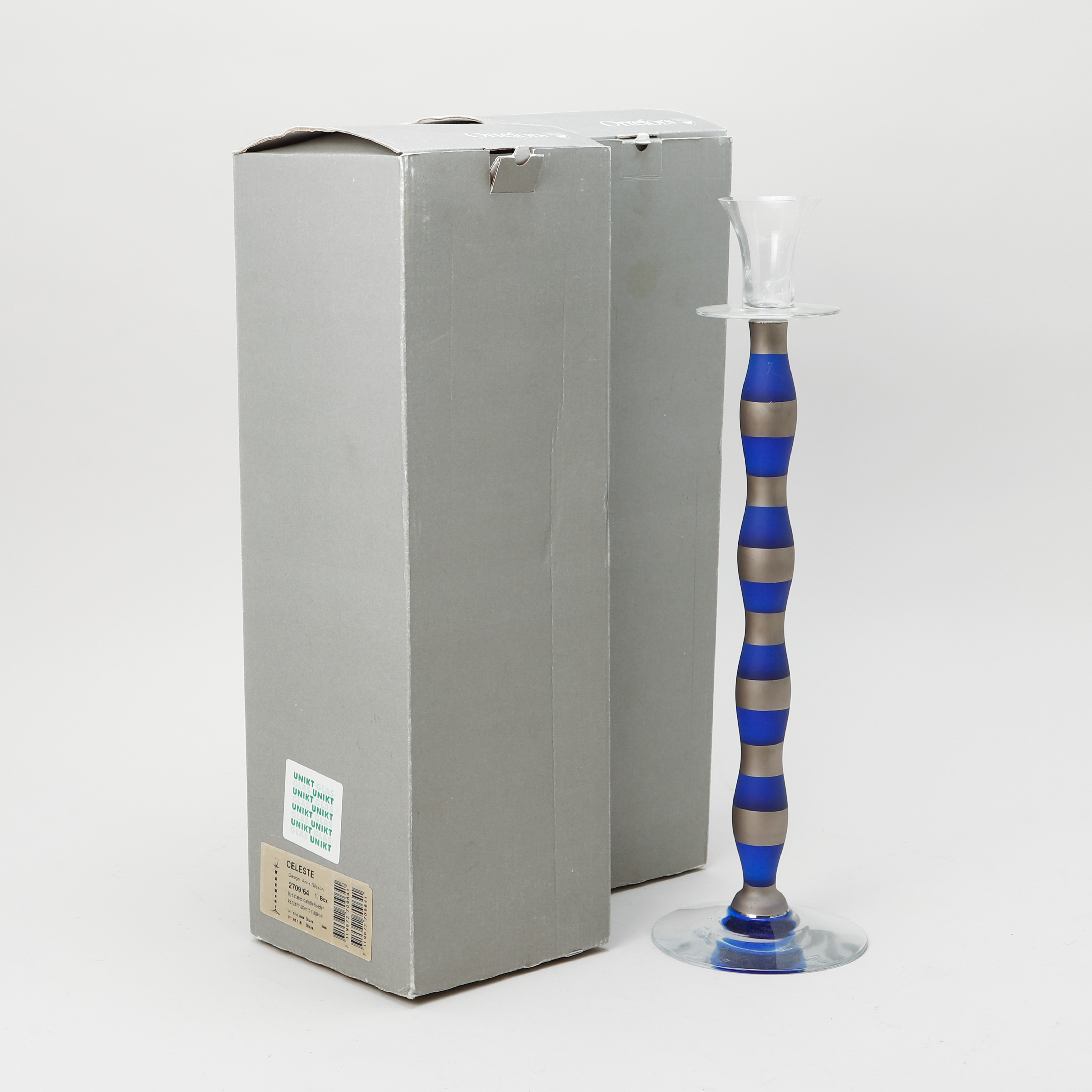 4106867. ANNE NILSSON. A set of 2 “Celeste” candlesticks, Orrefors.