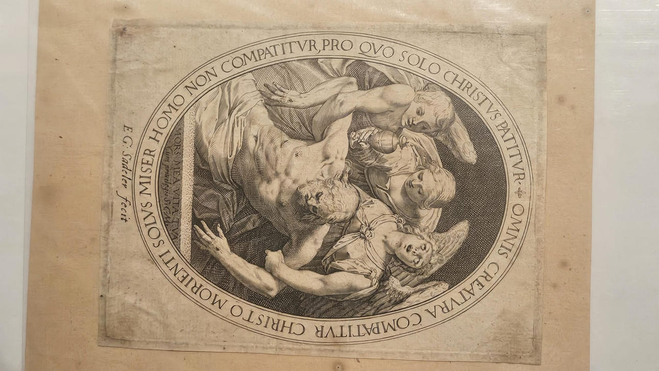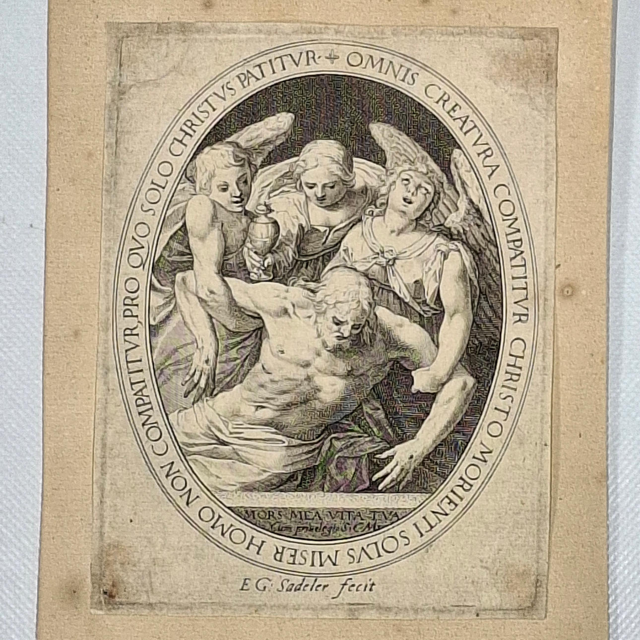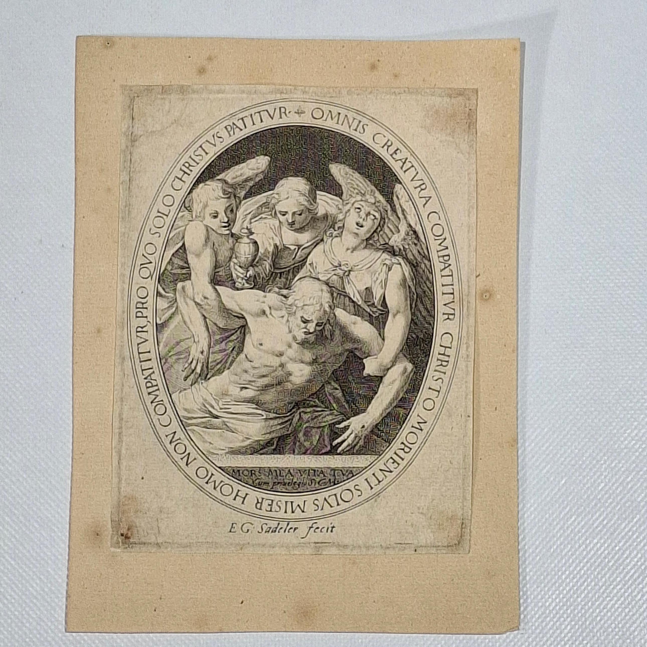 4107249. E.G.SADELER. Christ supported by angels. etched.