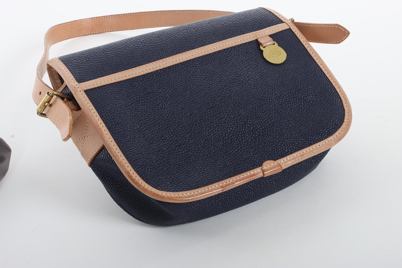 Mulberry, bag, “Mini Trout”, in Scotchgrain material with adjustable shoulder strap and leather details. Associated dustbag. Stamped with number 050690.