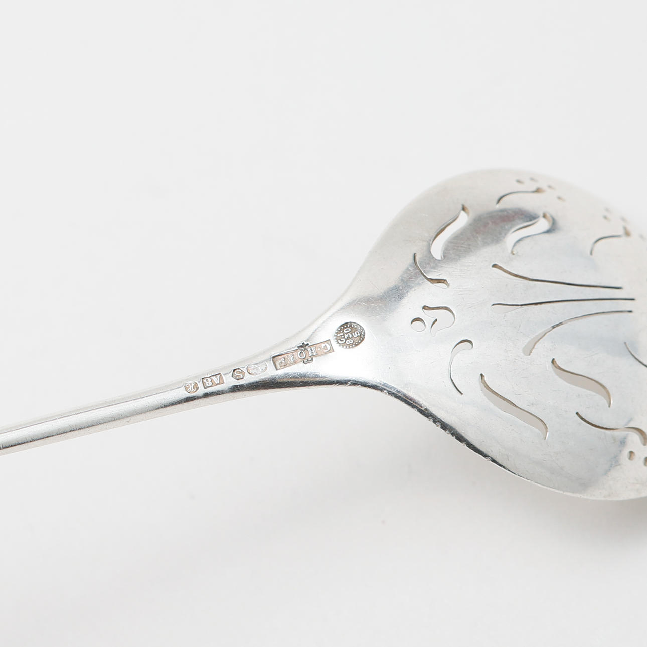 Spoon design 84 length approx. 11 cm, Ströspoon C Hoff, Swedish import stamps length approx. 14 cm, spoon indistinct stamps length approx. 13 cm.