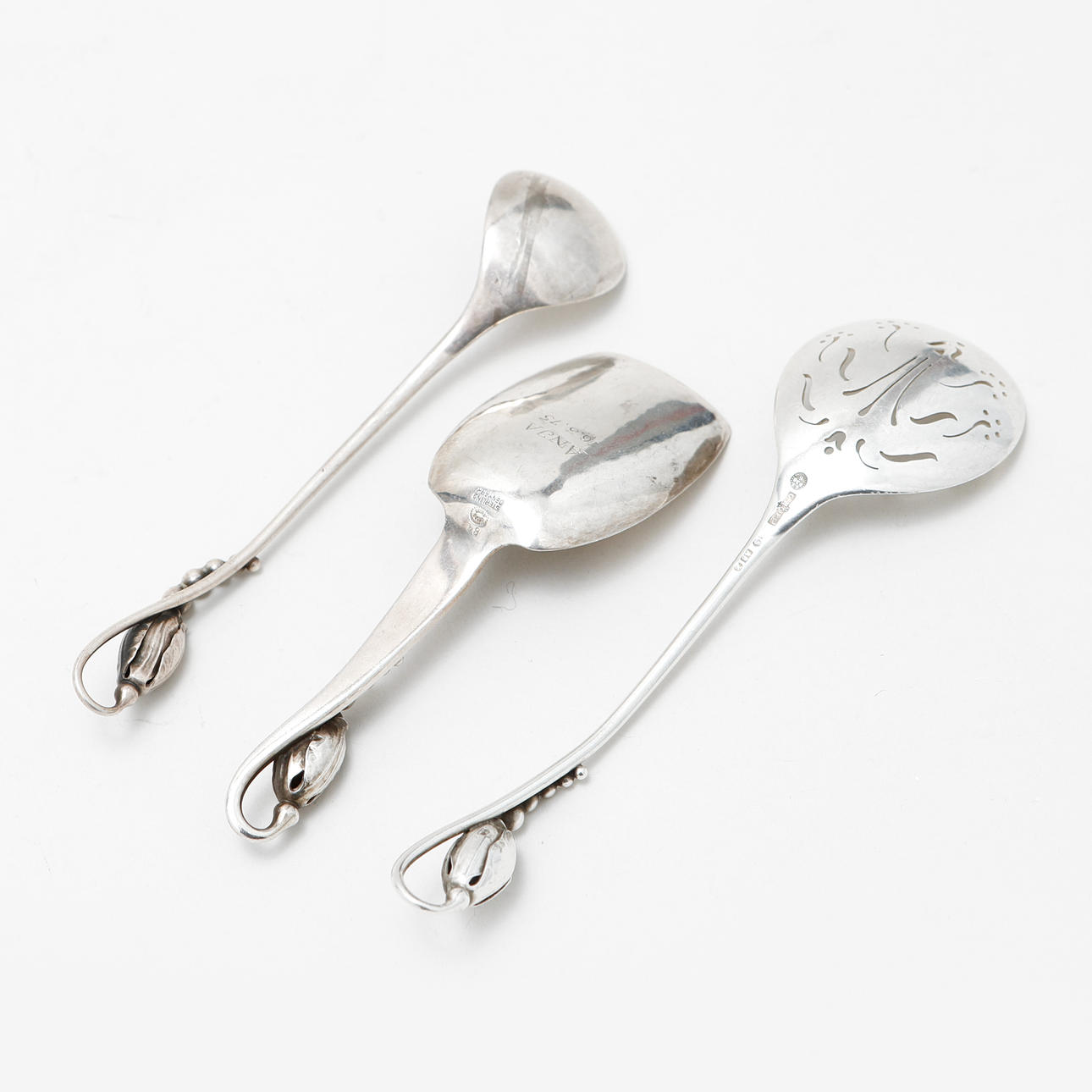 GEORG JENSEN. Spoons, 3 pcs, silver, “Magnolia”.