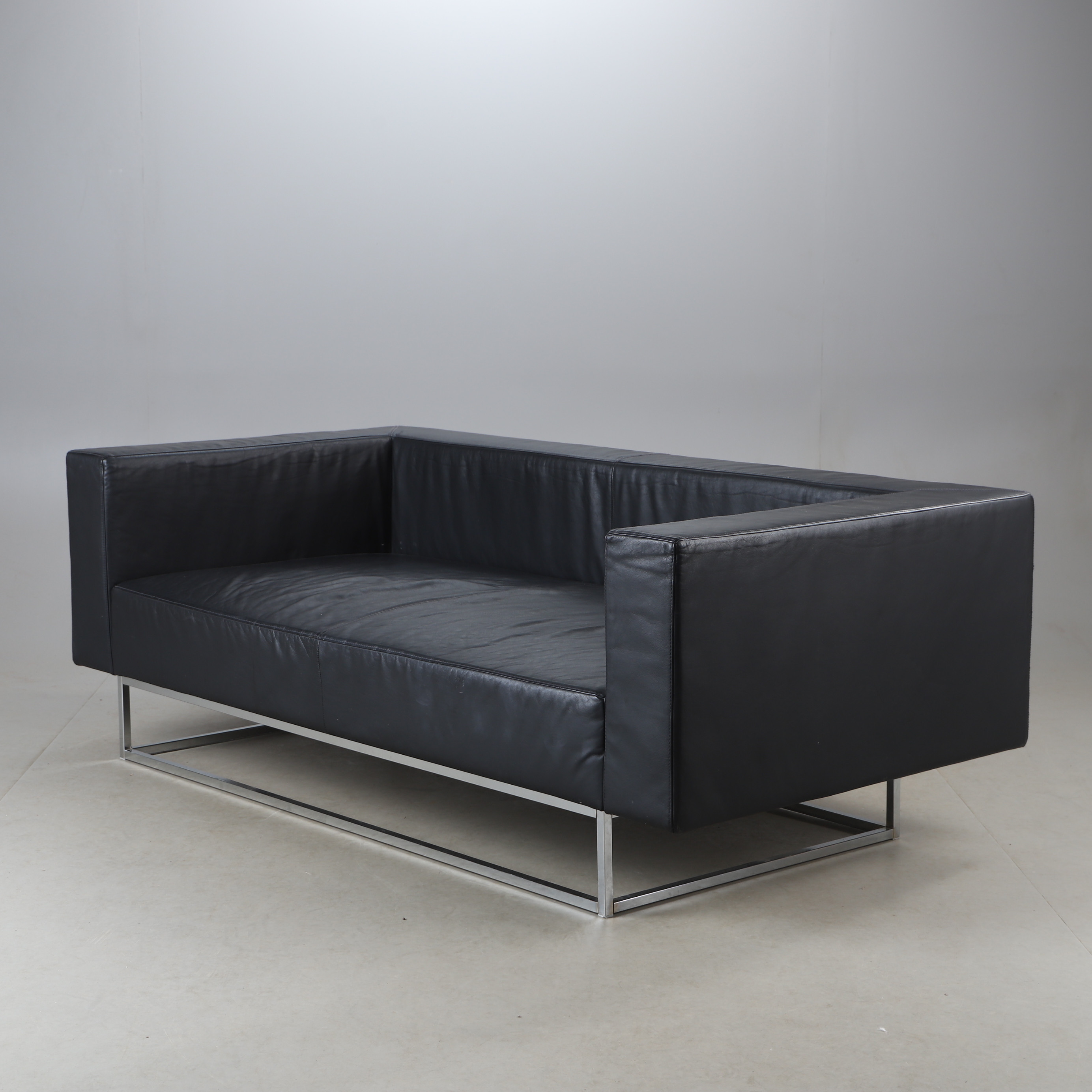 4113435. A 21st-century leather upholstered sofa.