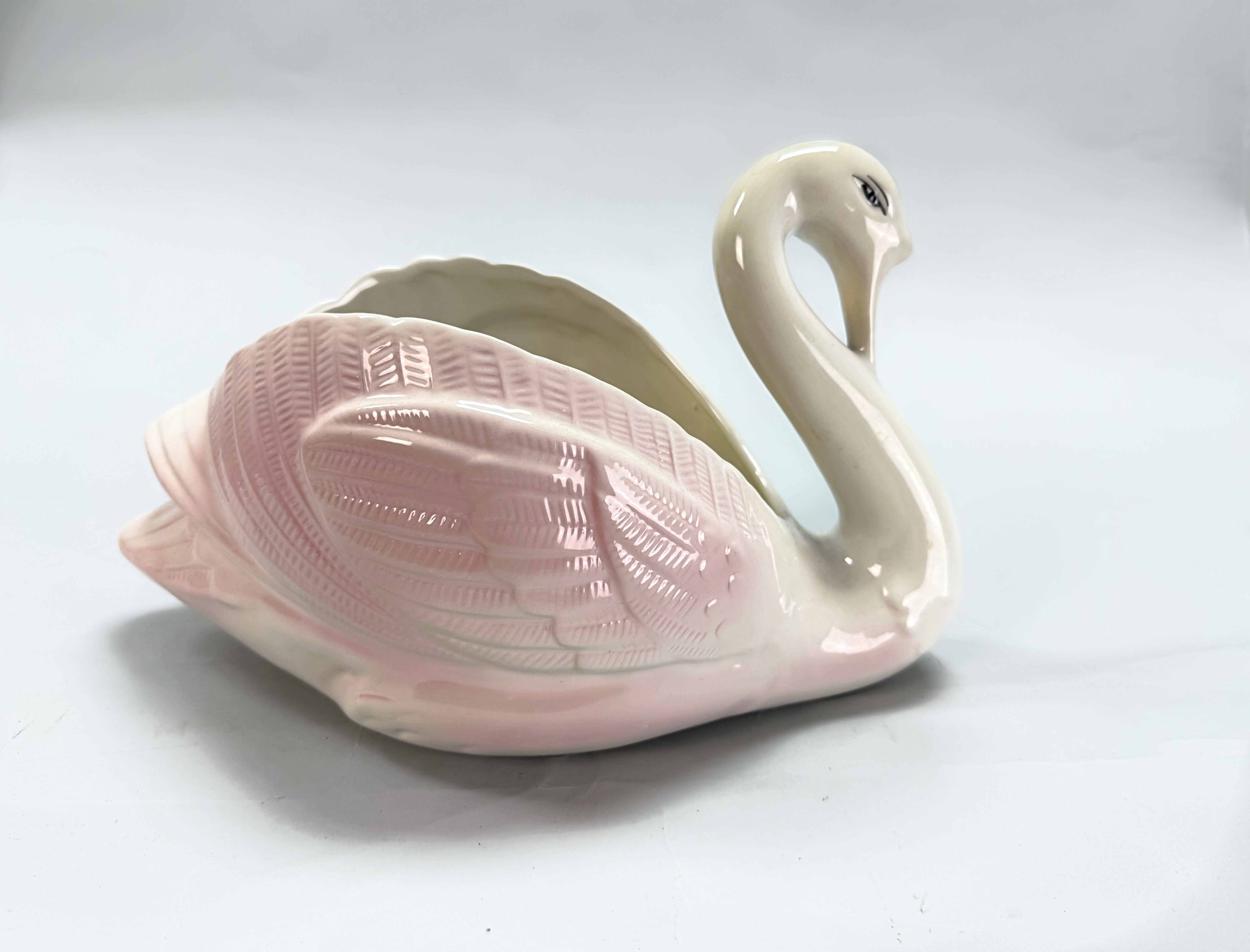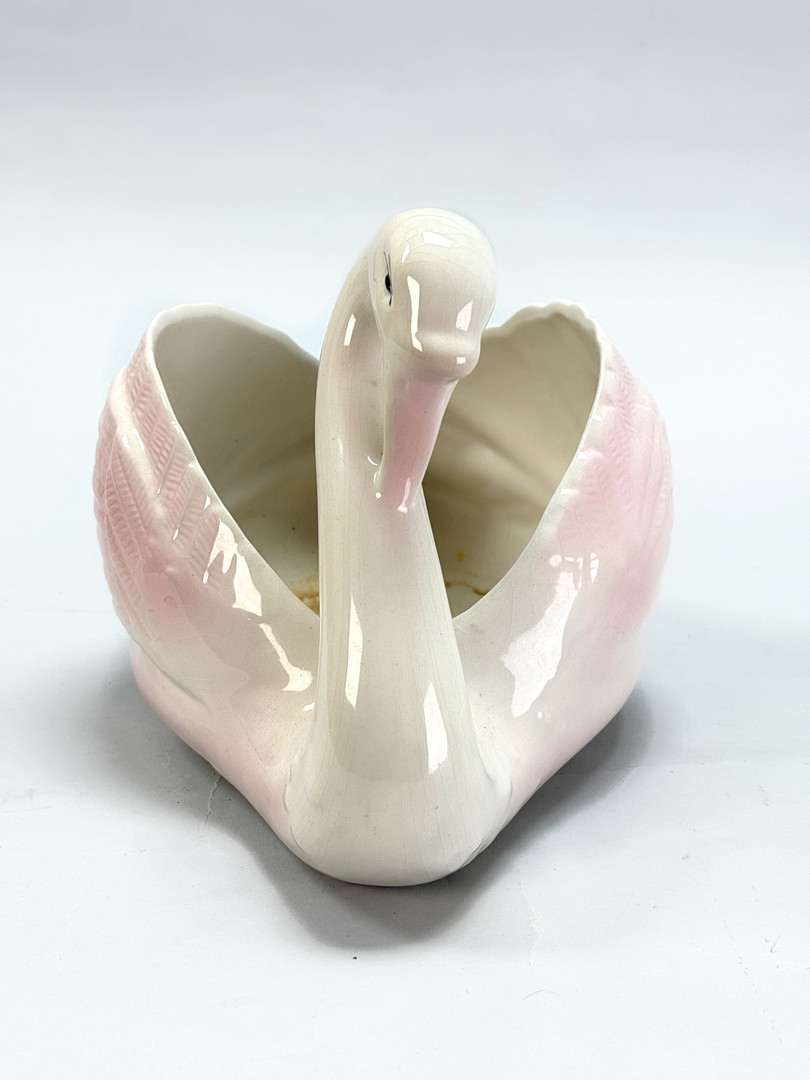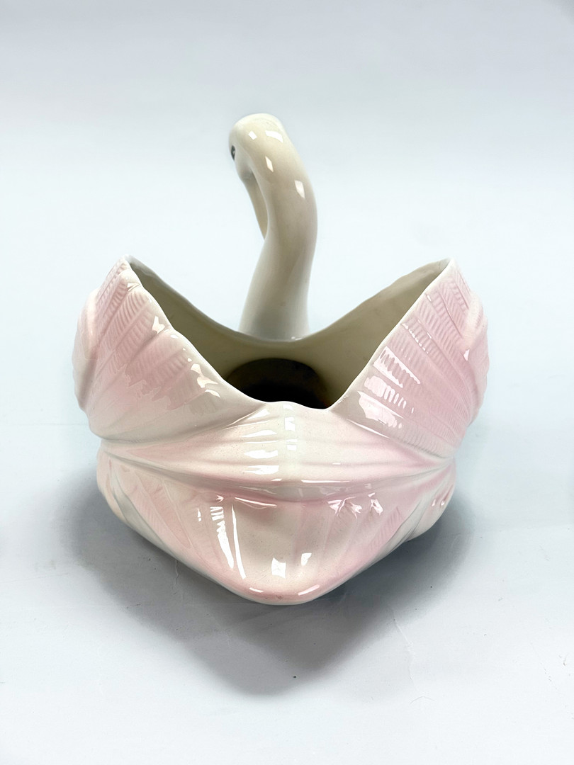 4114316. OUTER LINER/FLOWERPOT, Swan, white/pink glazed ceramic.