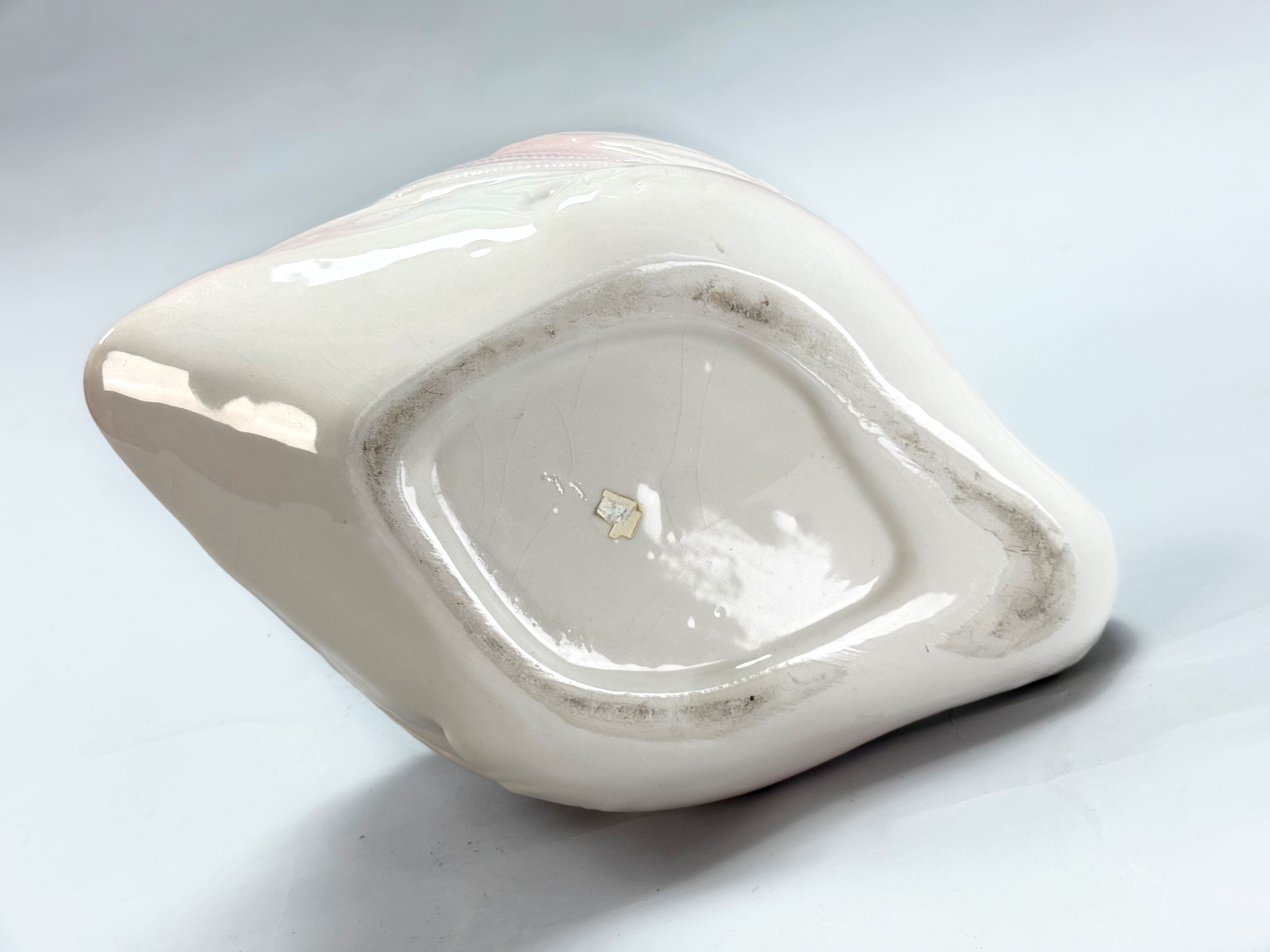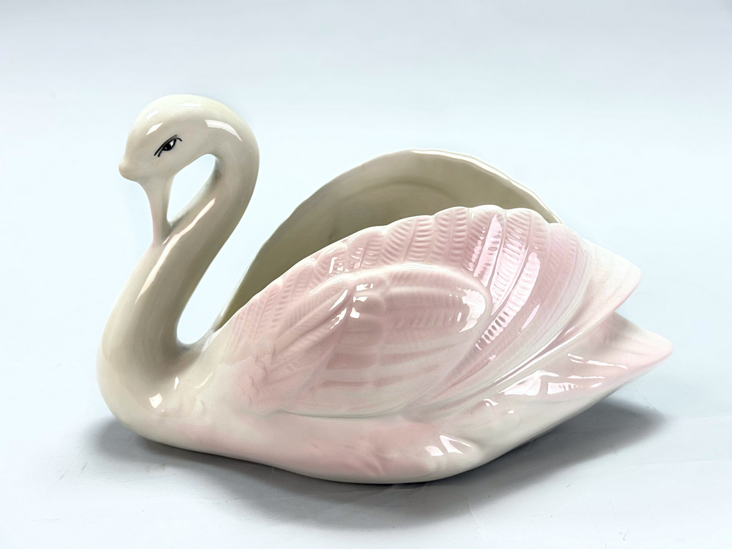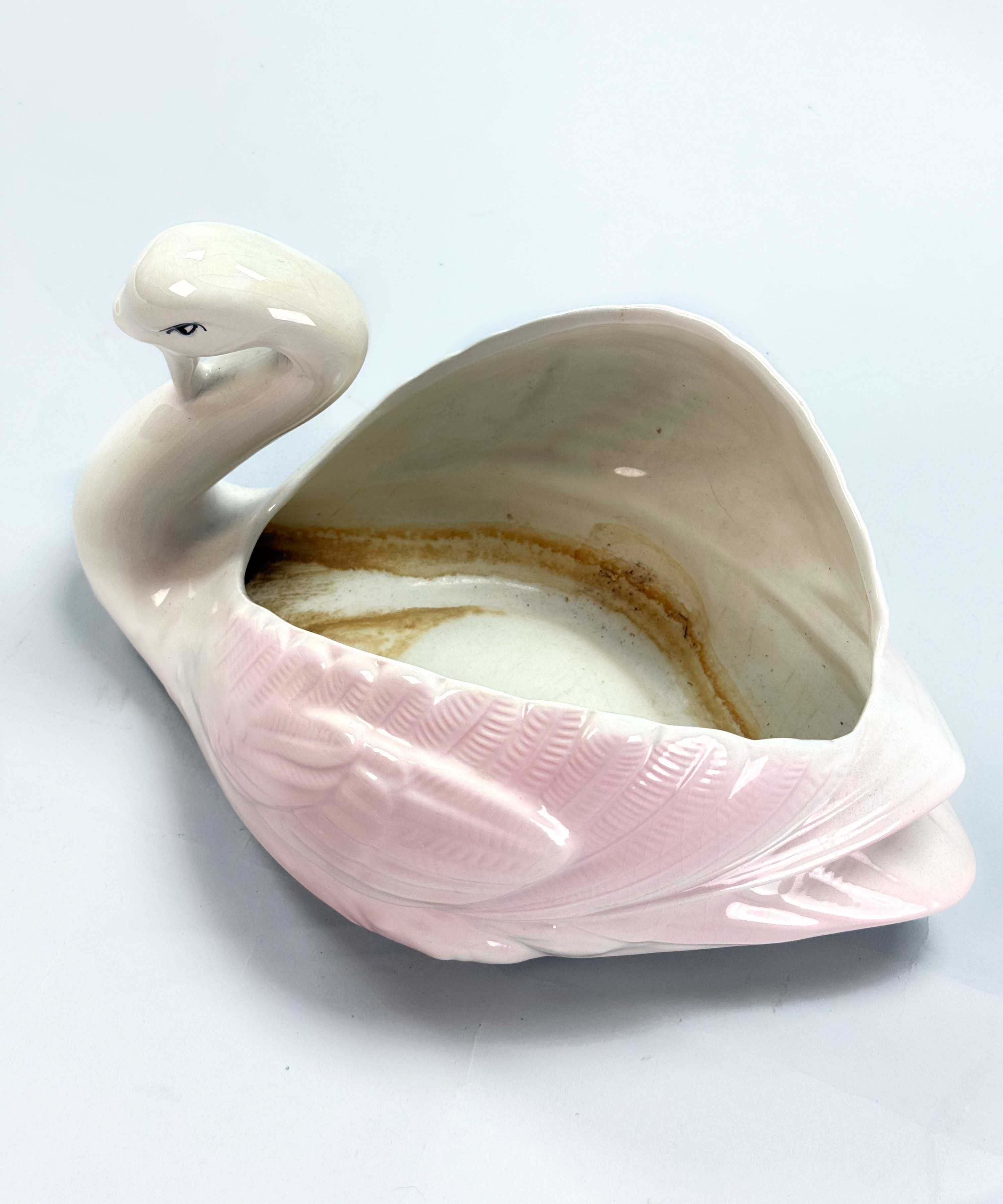 4114316. OUTER LINER/FLOWERPOT, Swan, white/pink glazed ceramic.