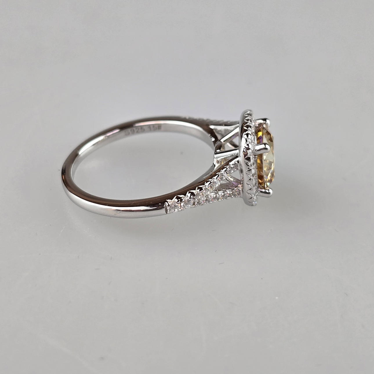 925 sterling silver, stamped “S925”, yellow moissanite from ca. 2.00 ct. (carat number engraved on the inside),