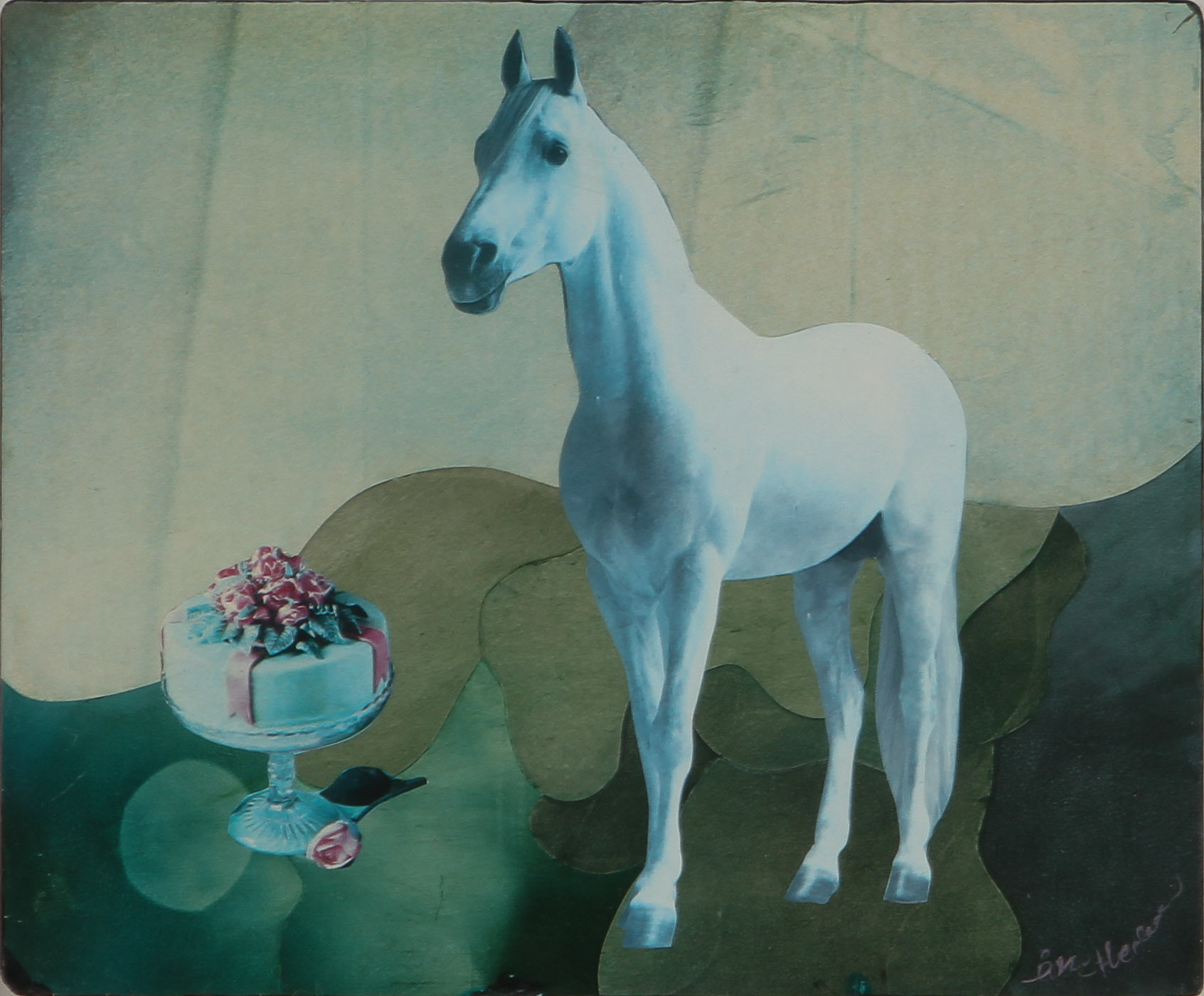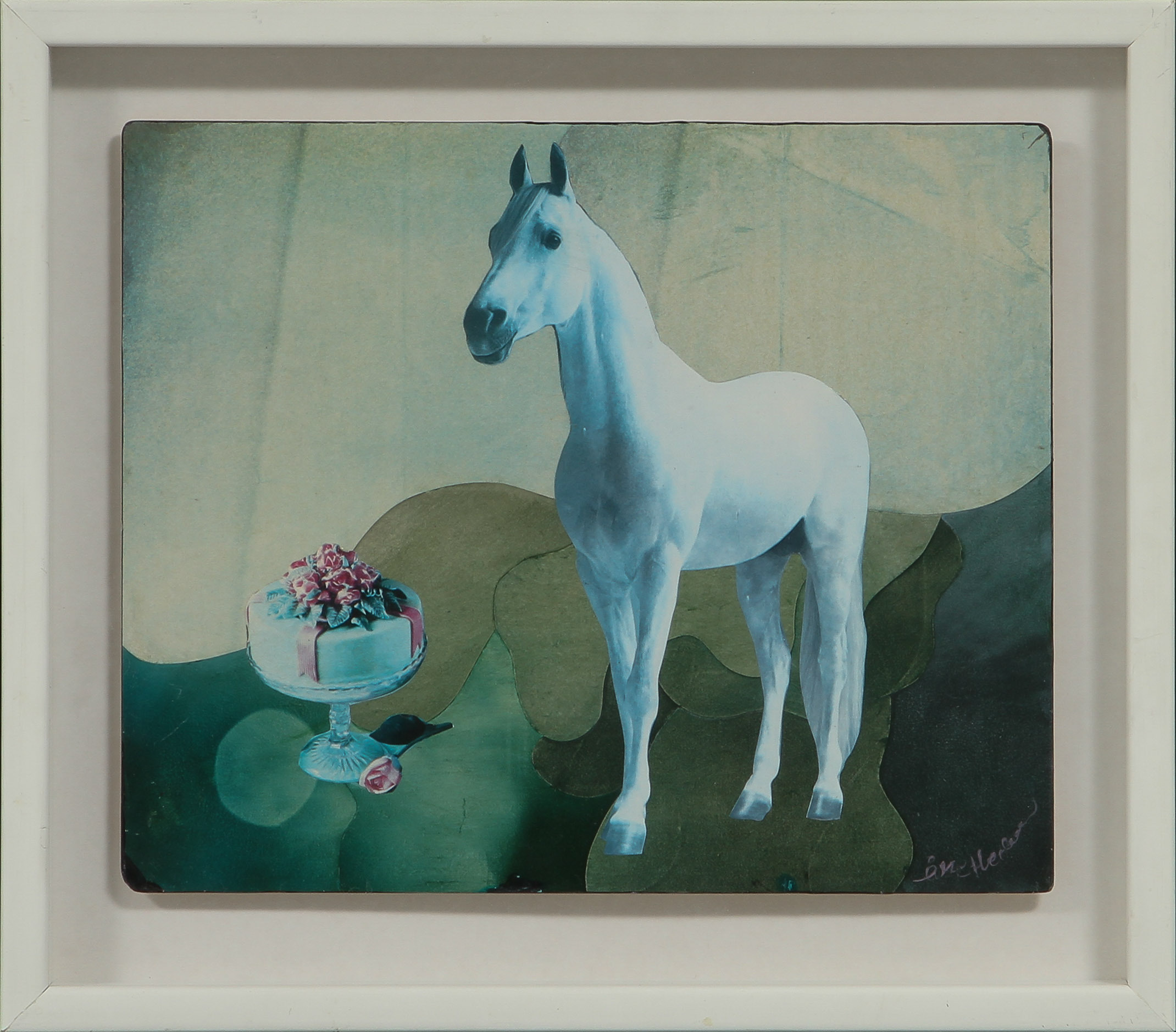 411694. ÅKE HEDMAN. White horse. Collage, signed.