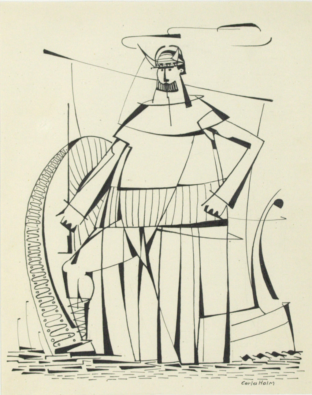 1 pc. The Vikings. Approx. 23 x 19 with frame 37 x 30 cm