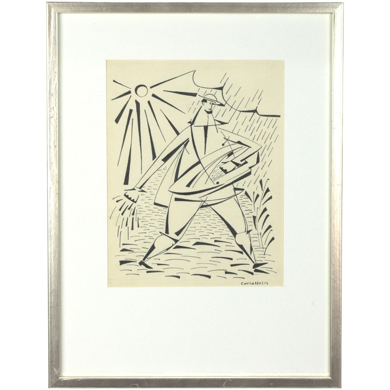 1 pc. Man who wounds. Approx. 25 x 19 with frame 42 x 32 cm