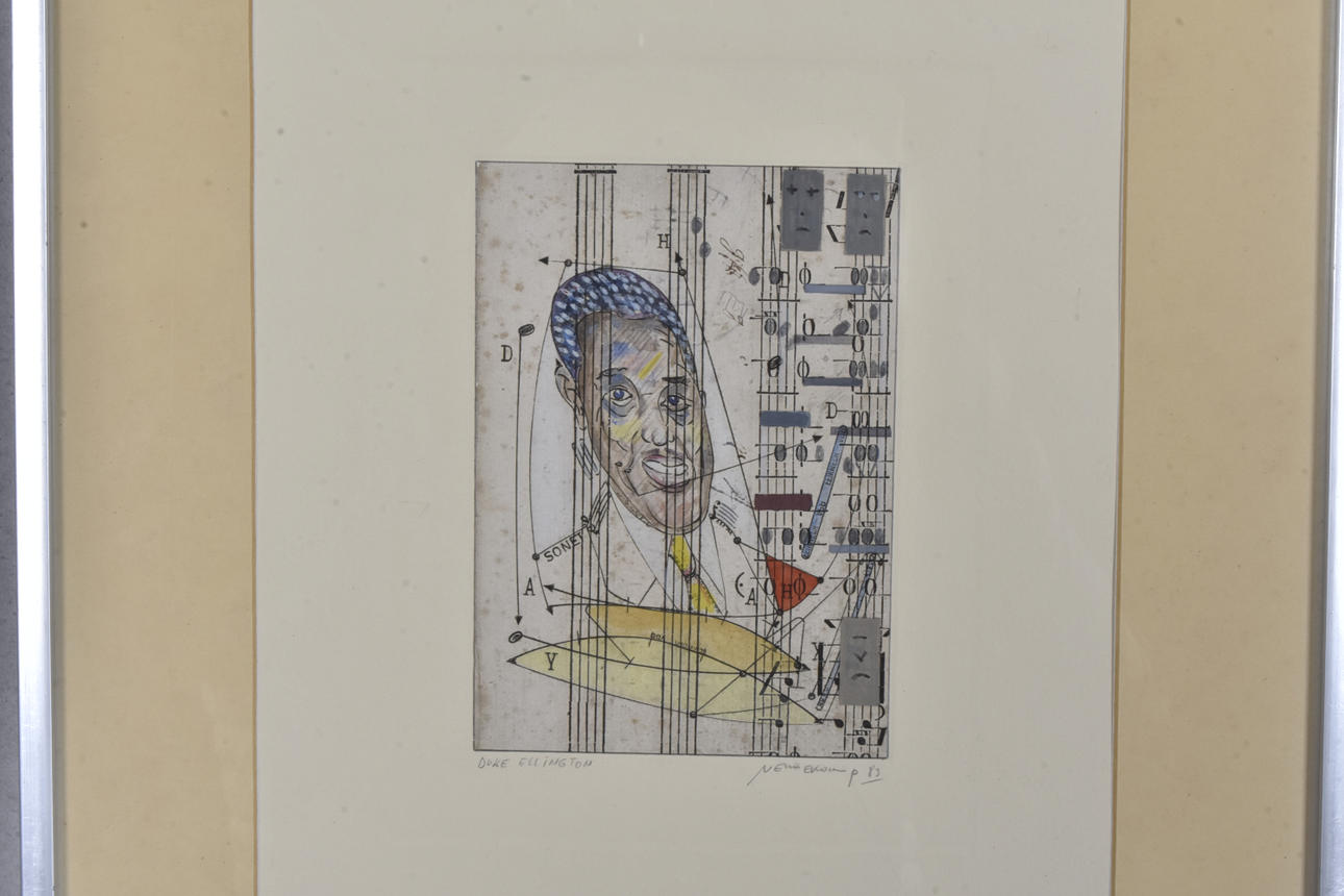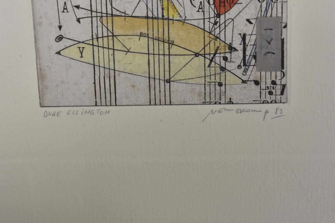 Duke Ellington, Signed and dated -83. 14x10 cm. Overall dimensions 41x31 cm.