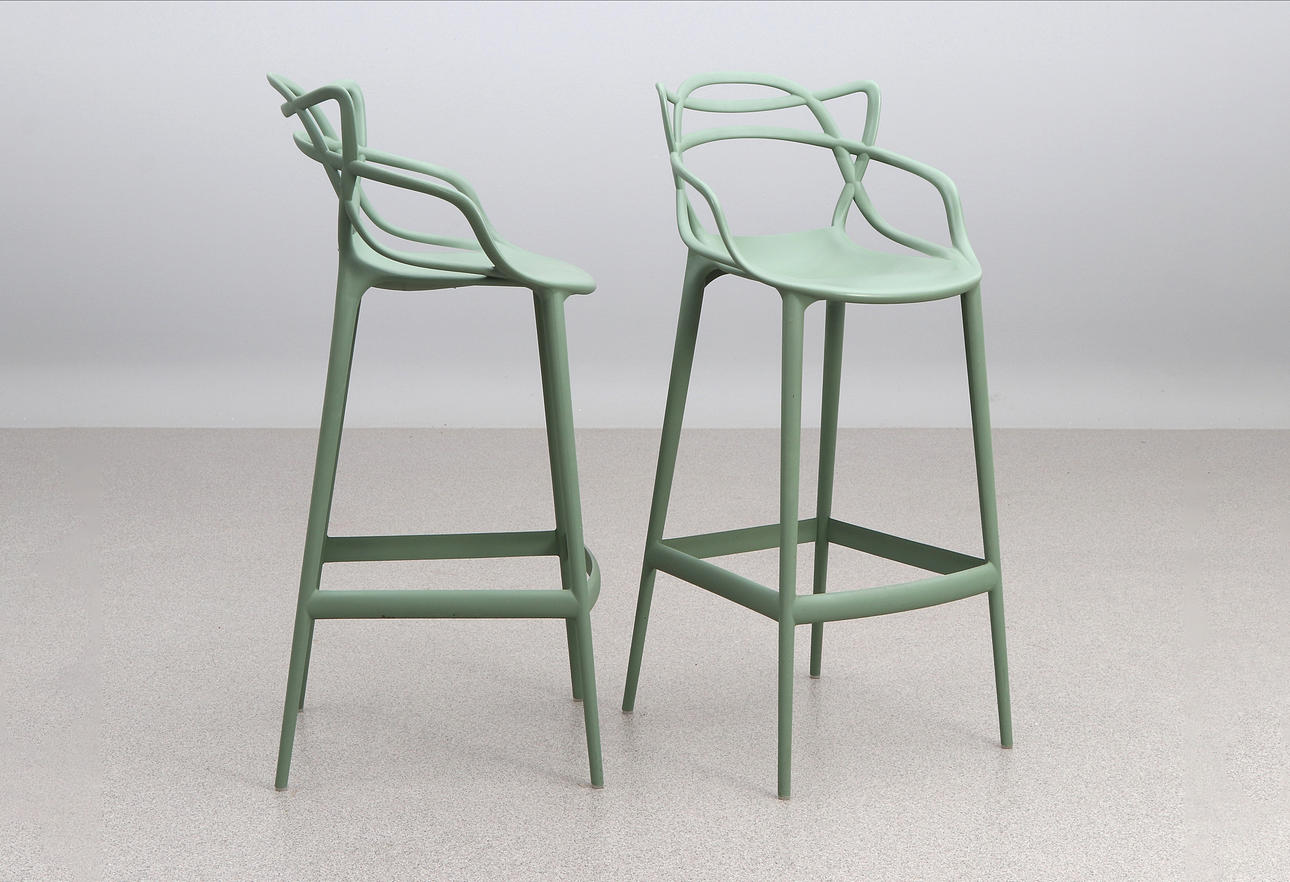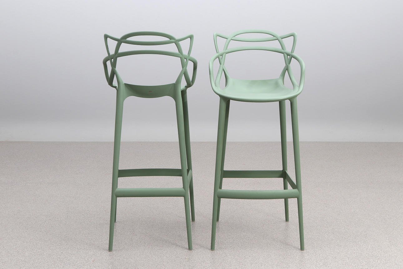 PHILIPPE STARK. BAR STOOLS, A PAIR. Plastic. “Masters Stool”. Cartel, contemporary manufacturing.
