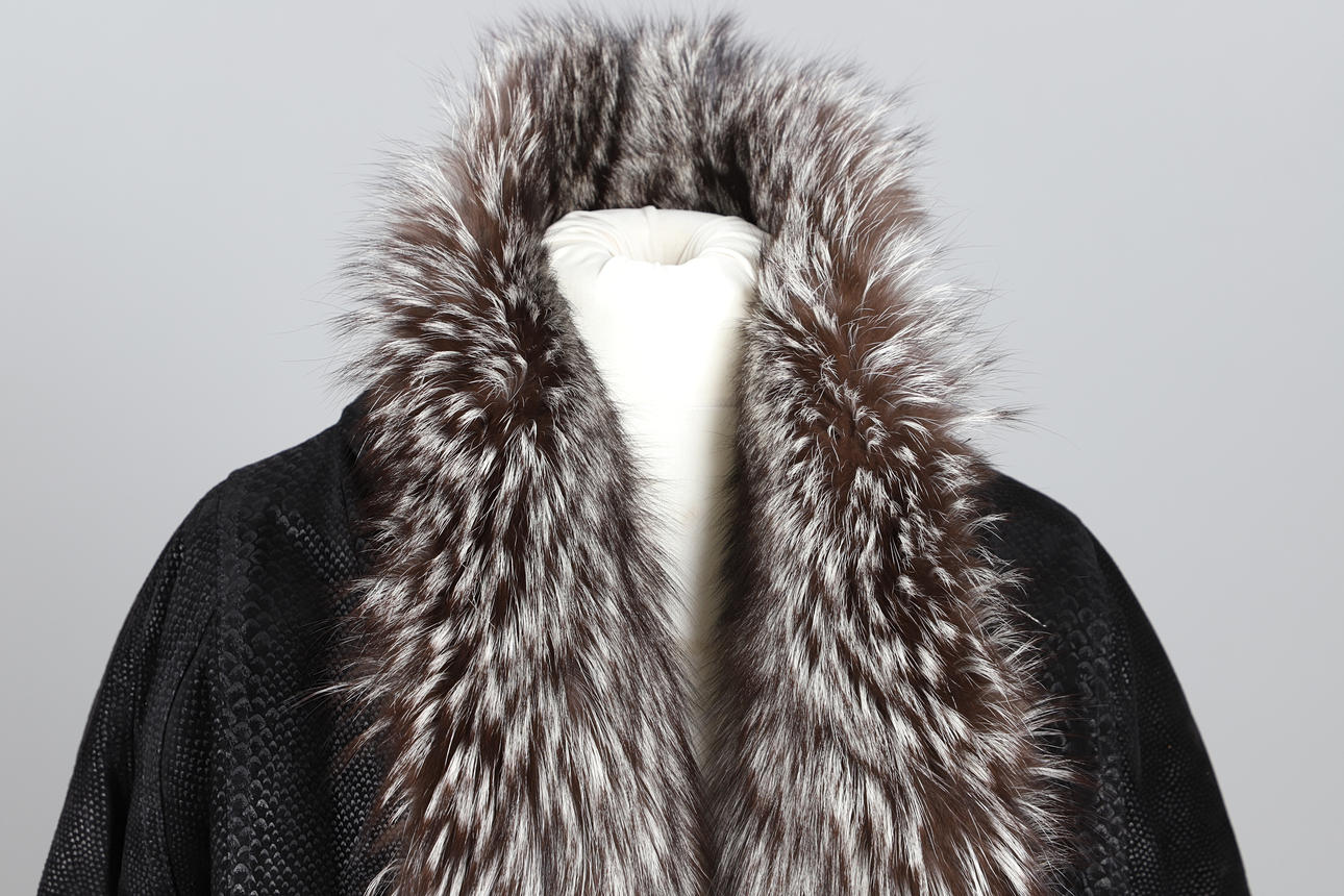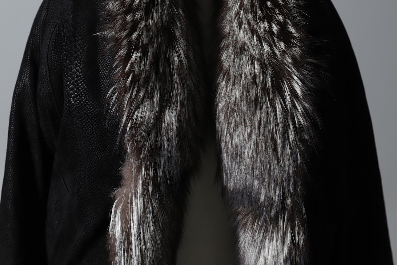 the snakeskin effect body, fur collar, two front pockets