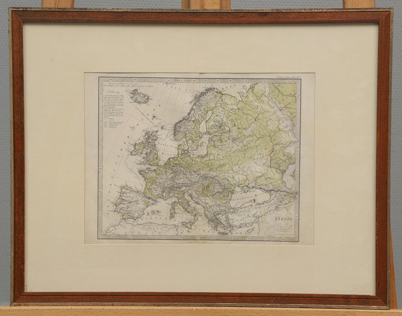 Framed map of Europe. From Stieler's Schul-Atlas No. 5. Designed by Hermann Berghaus.