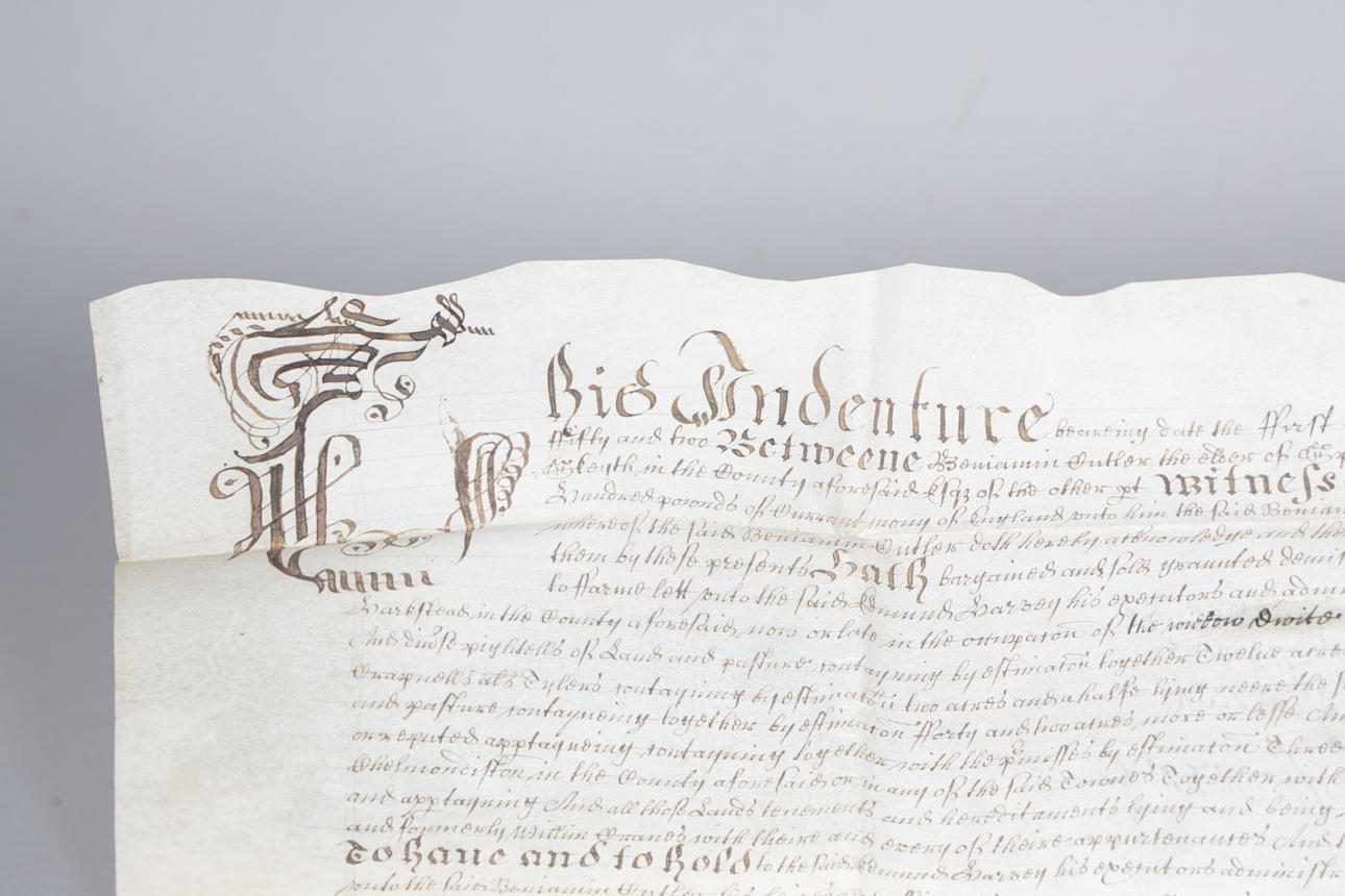 4130055. A CROMWELLIAN DATED 1652 MANUSCRIPT INDENTURE, LEONARD BASBEY, SUFFOLK.