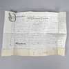 The indenture dated 1628, and writyten to the faculty of Freston Church in Suffolk for a seat by C? Corbett, and written in latin, signed C Corbett, 32cm by 22cm.