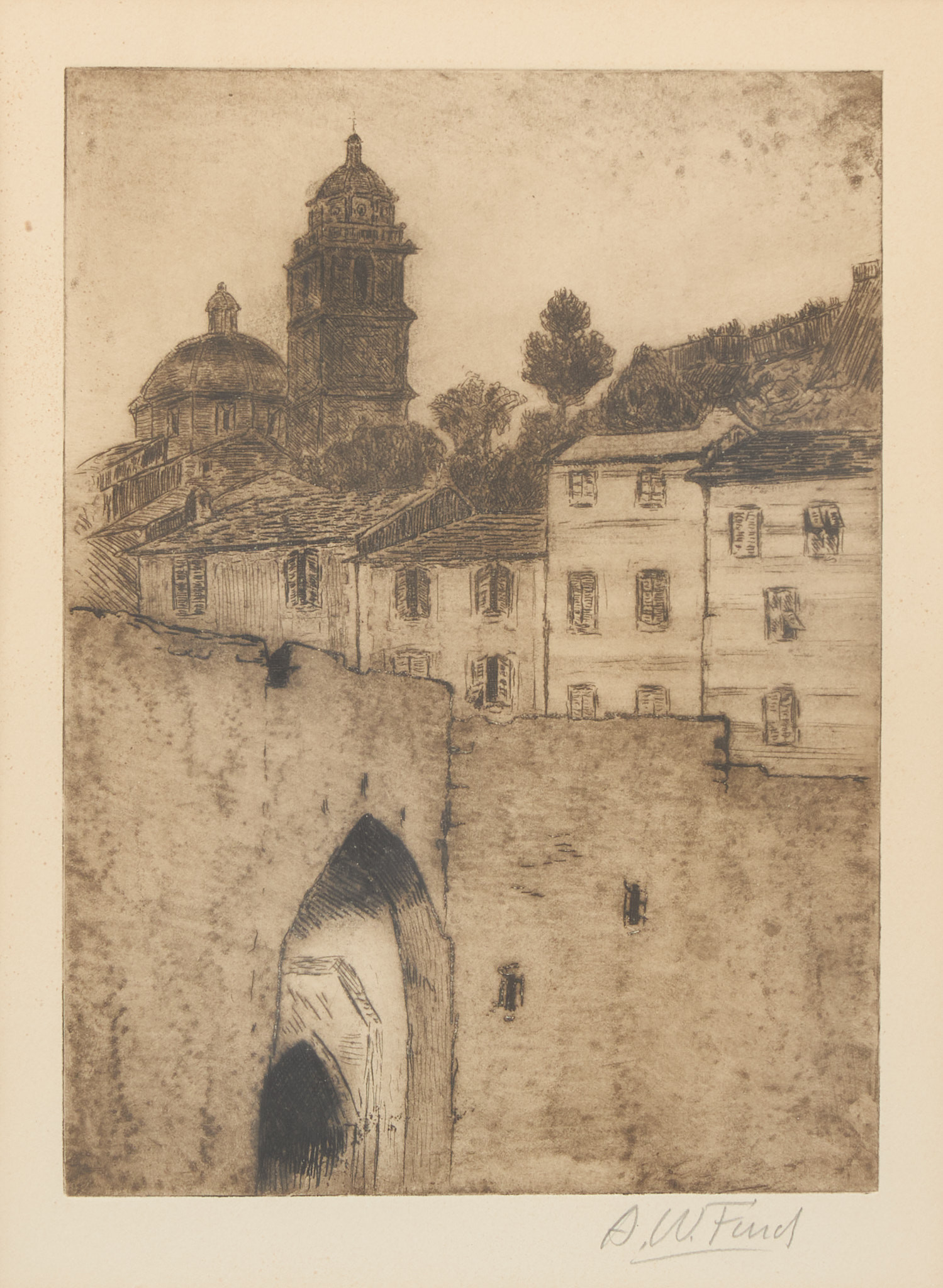 4130996. ALFRED WILLIAM FINCH. The bell tower, signed, etching.