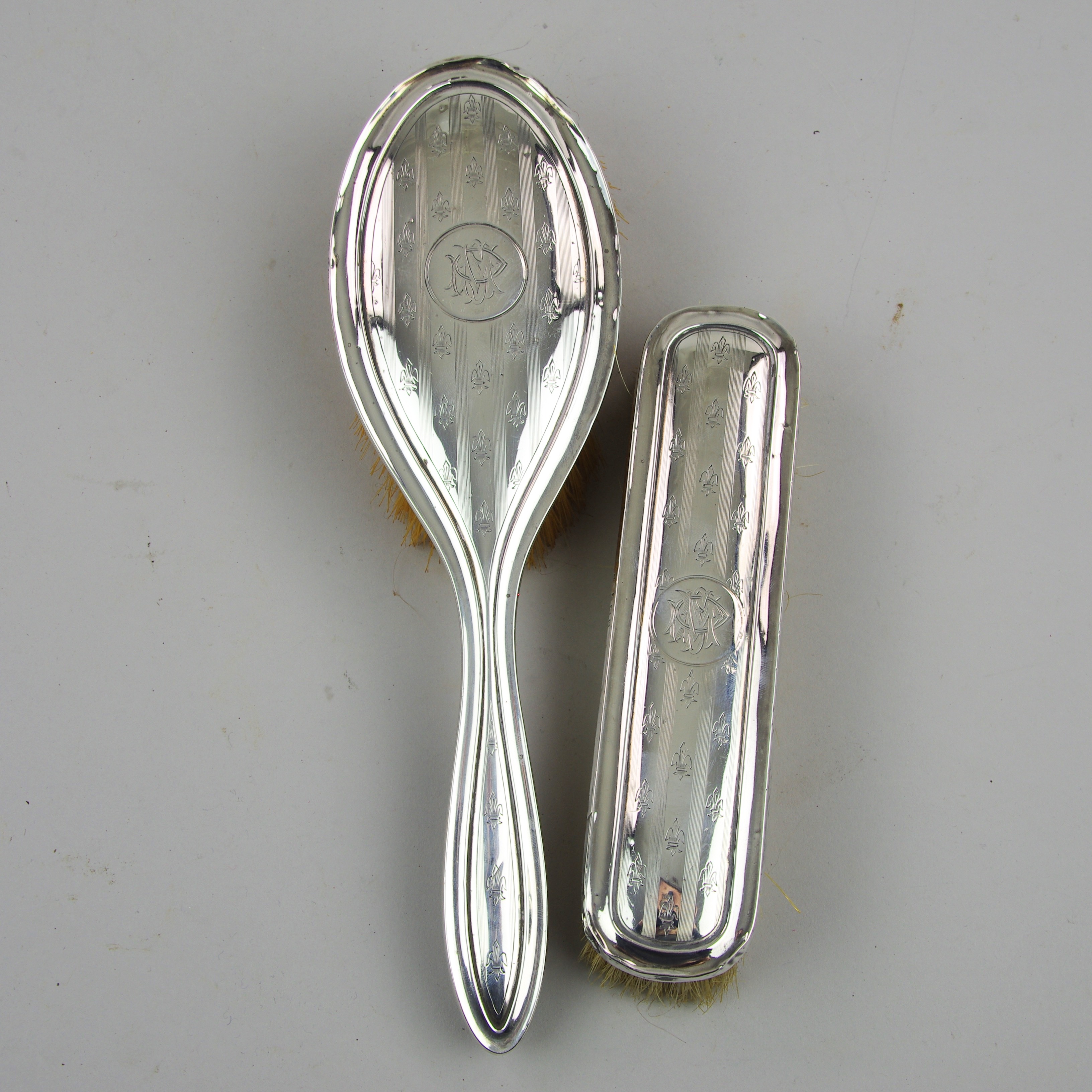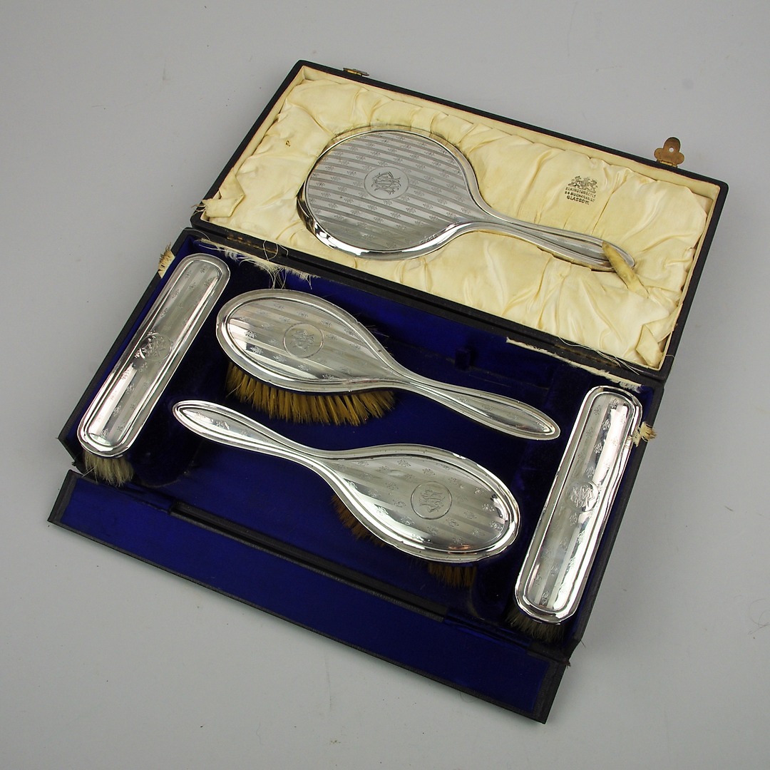 413126. BRUSH SET IN CASE, silver, Birmingham, 1912-1913.