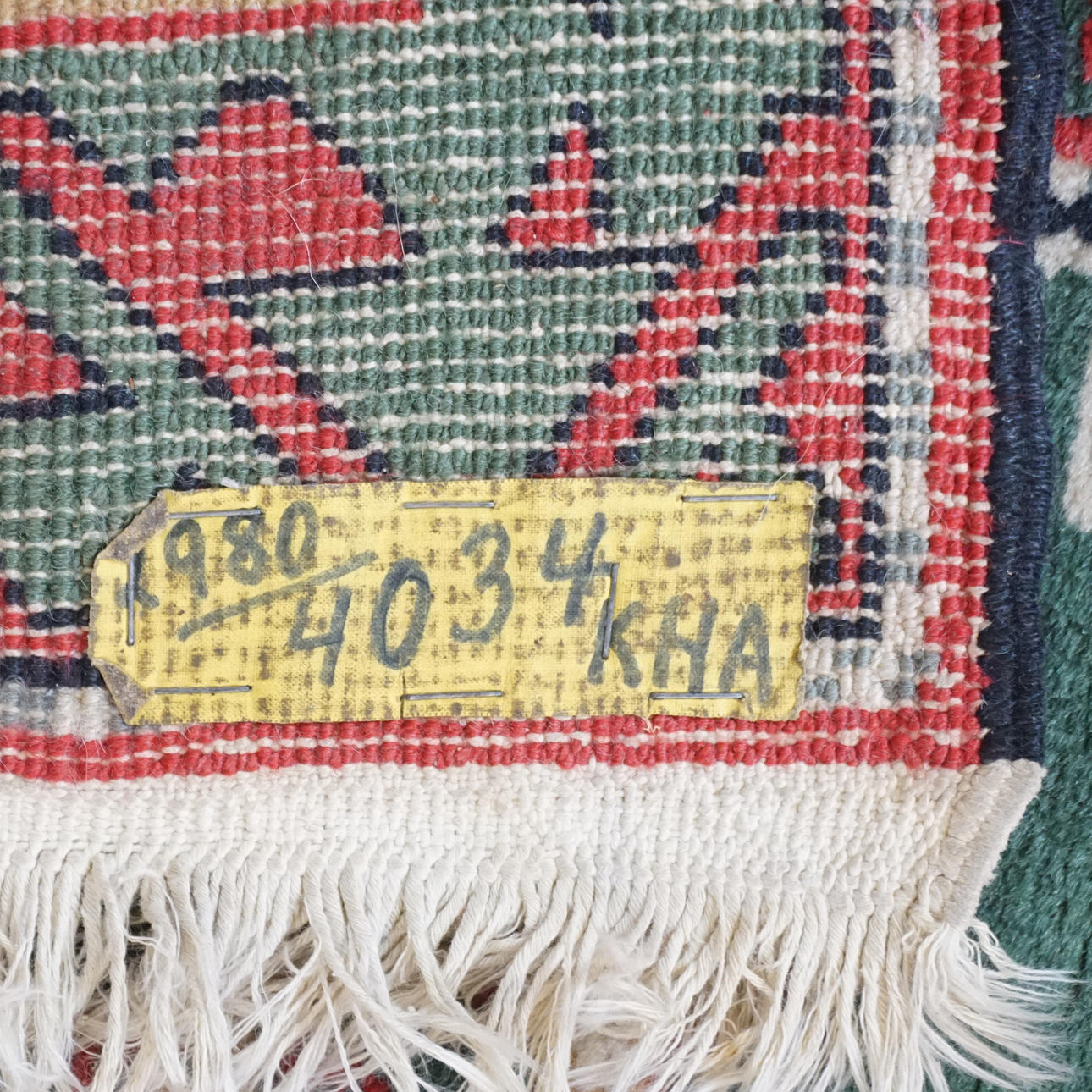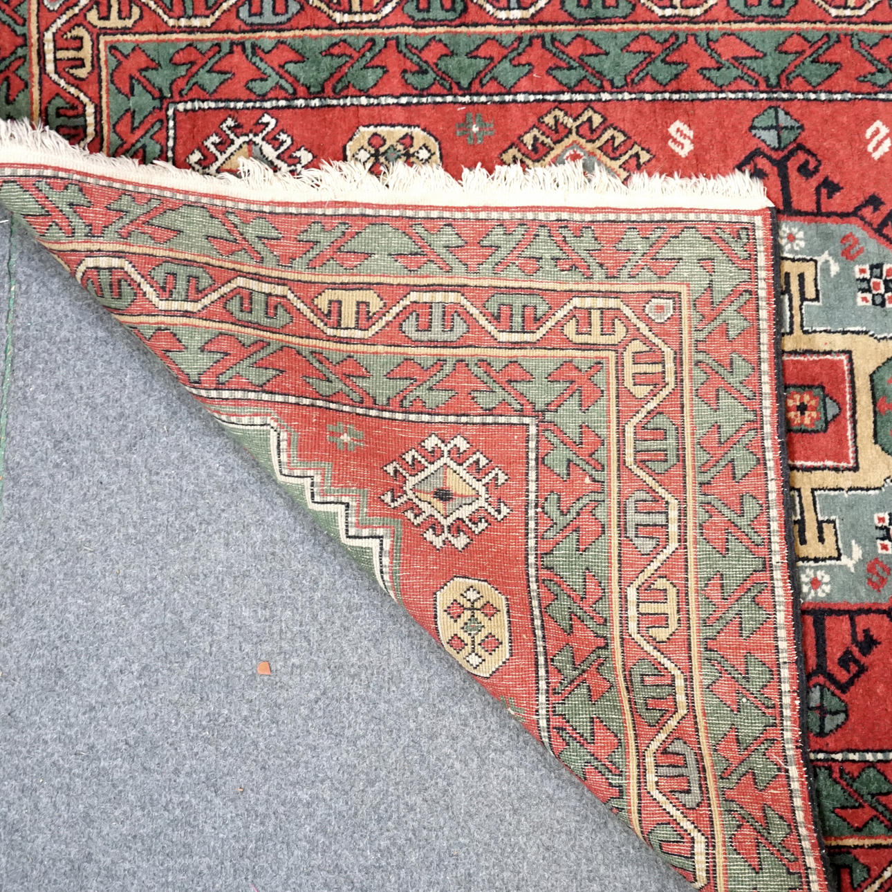 Oriental rug, hand-knotted. Red base color with geometric figures. approx. 160 x 106 cm.