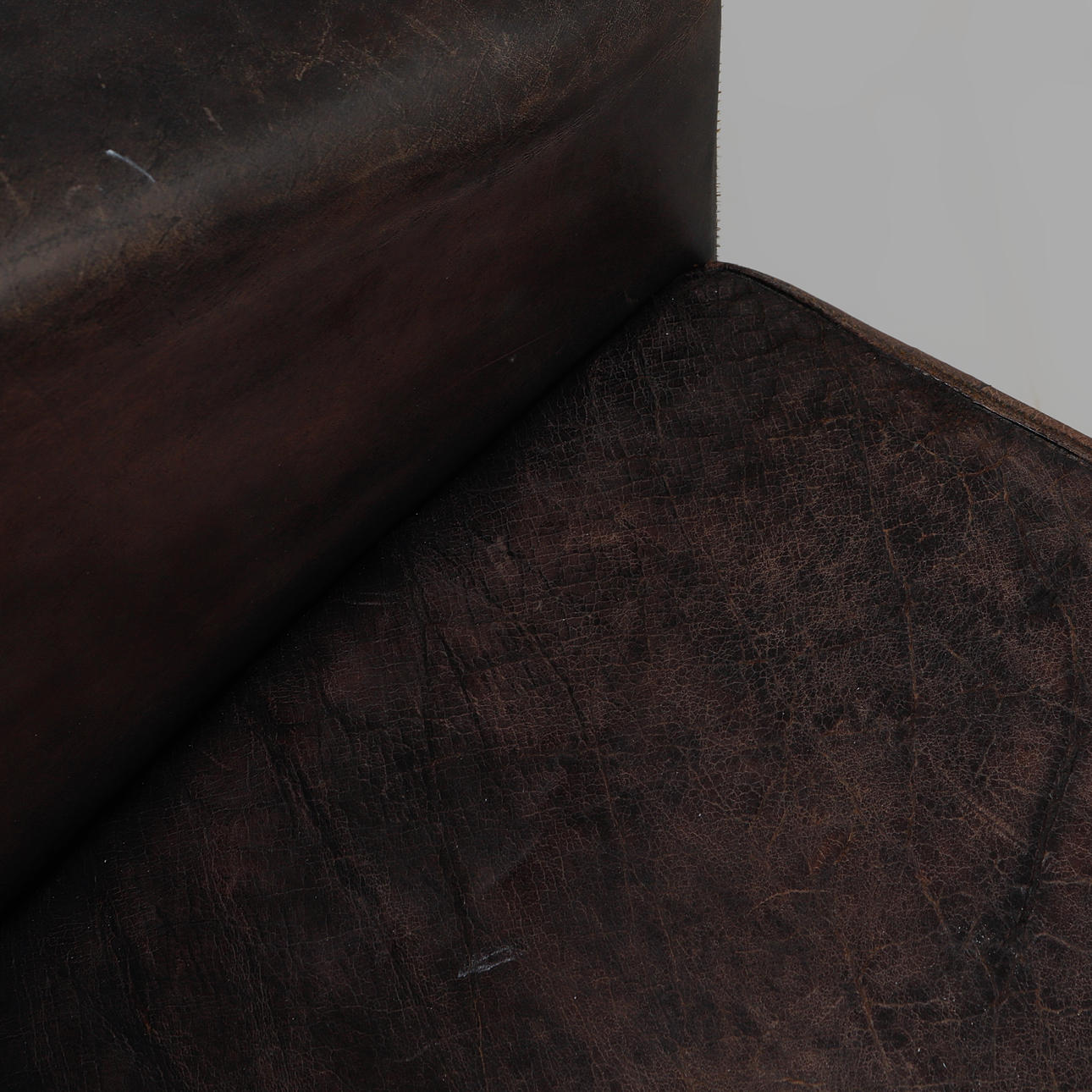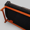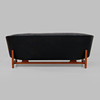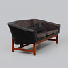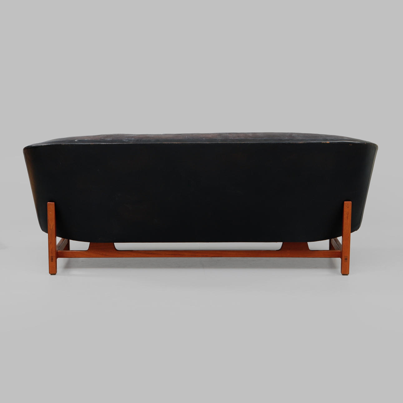 Leg stand in teak and black leather upholstery. Button-stapled back and loose cushions in the seat. Length ca 174 cm, seat height approx. 39 cm, back height approx. 67 cm.