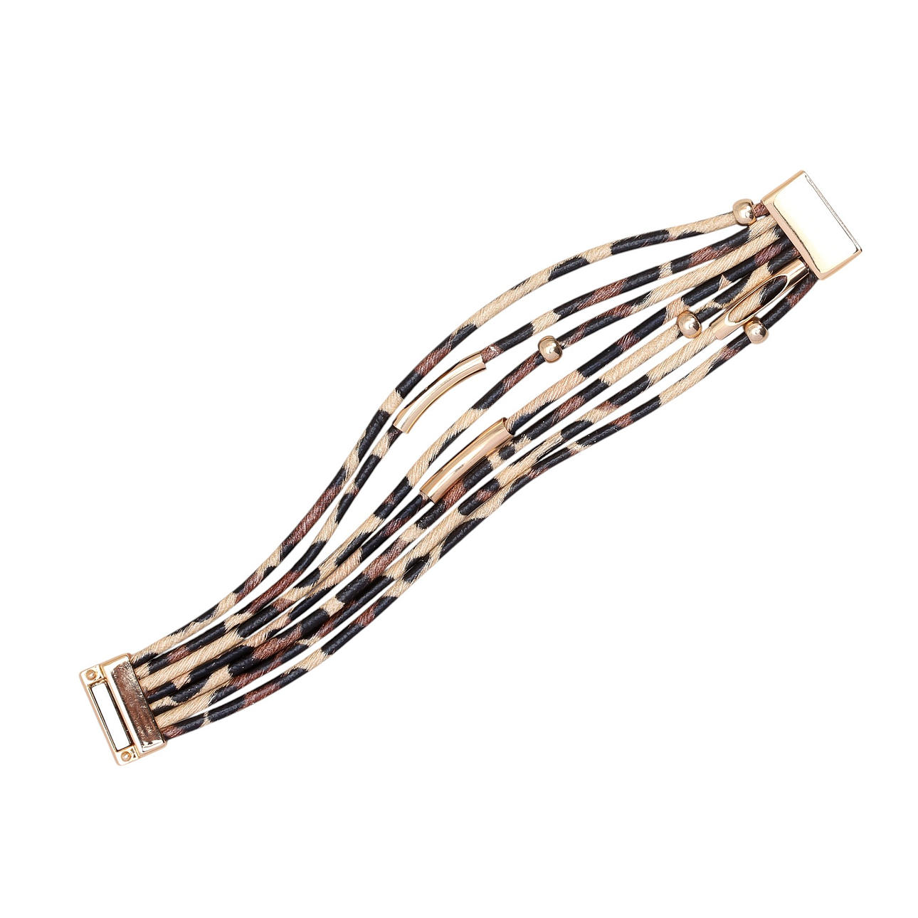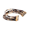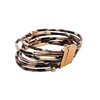 Over-gilded metal, acrylic and leopard imitation leather. Bracelet with magnet clasp.