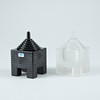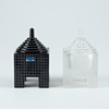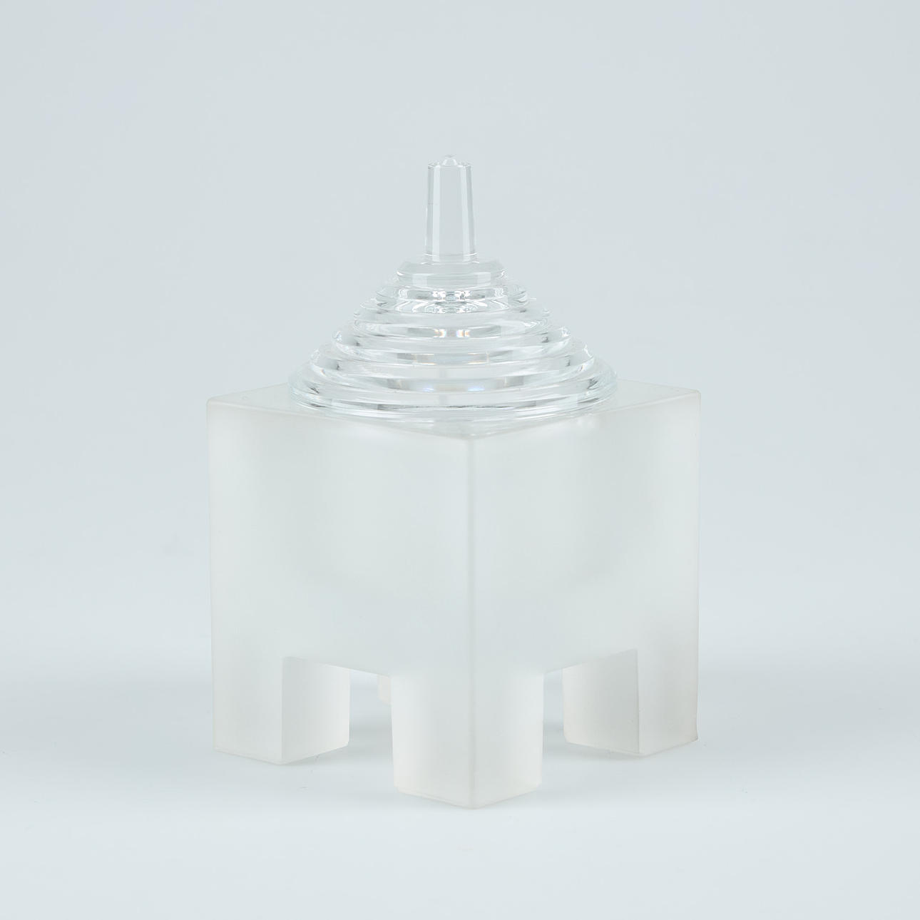 Molded clear black glass, partially frosted. Height 13.5 cm.