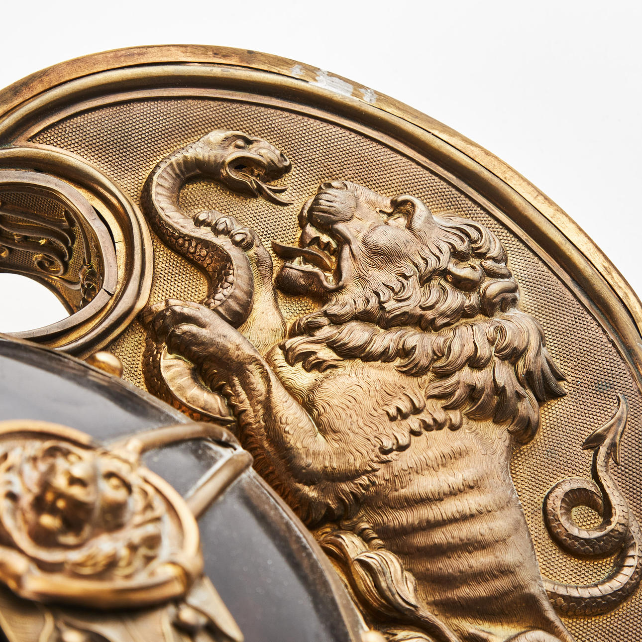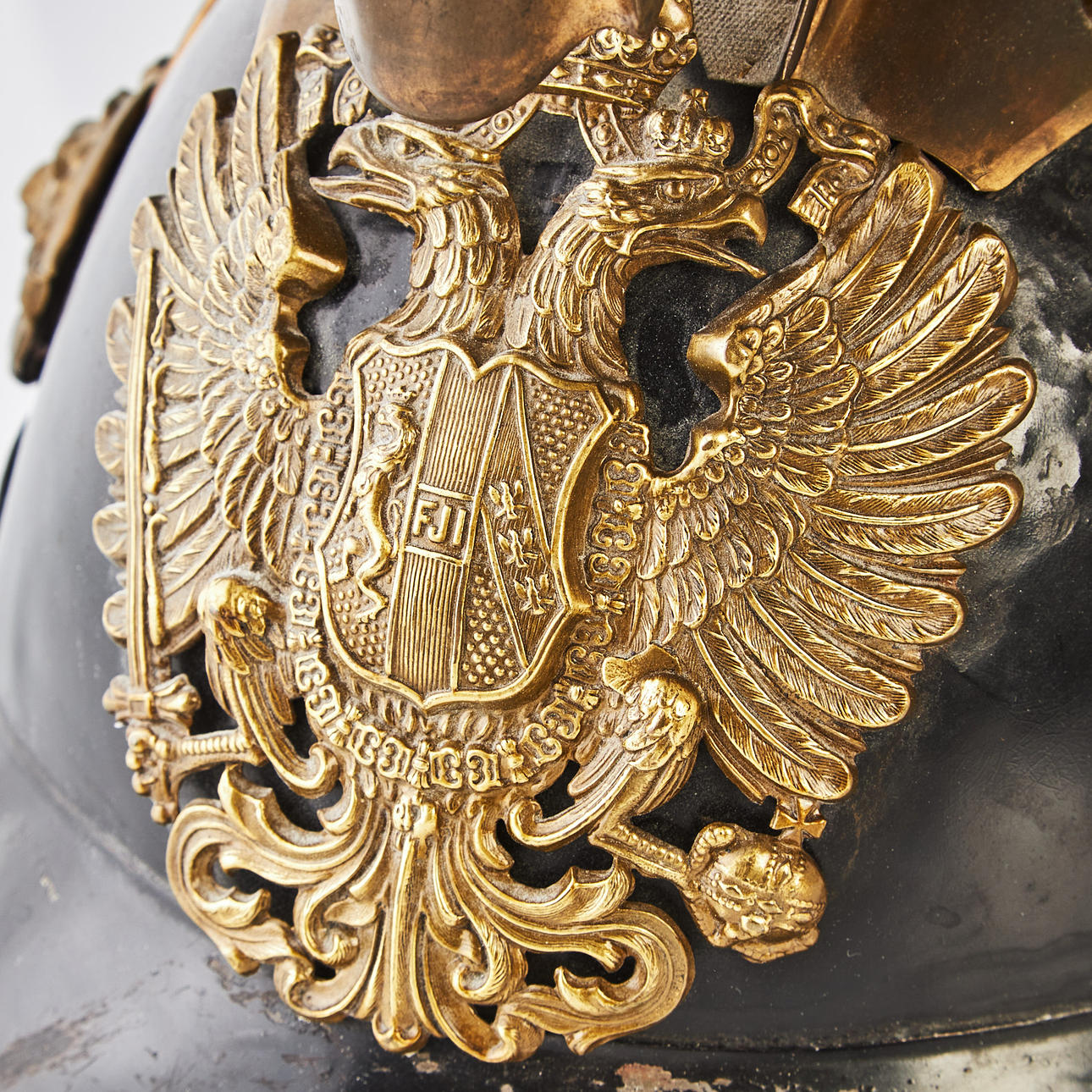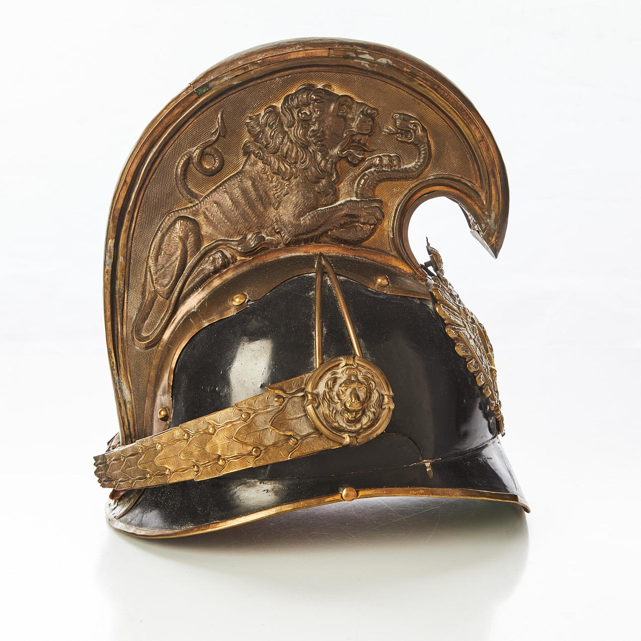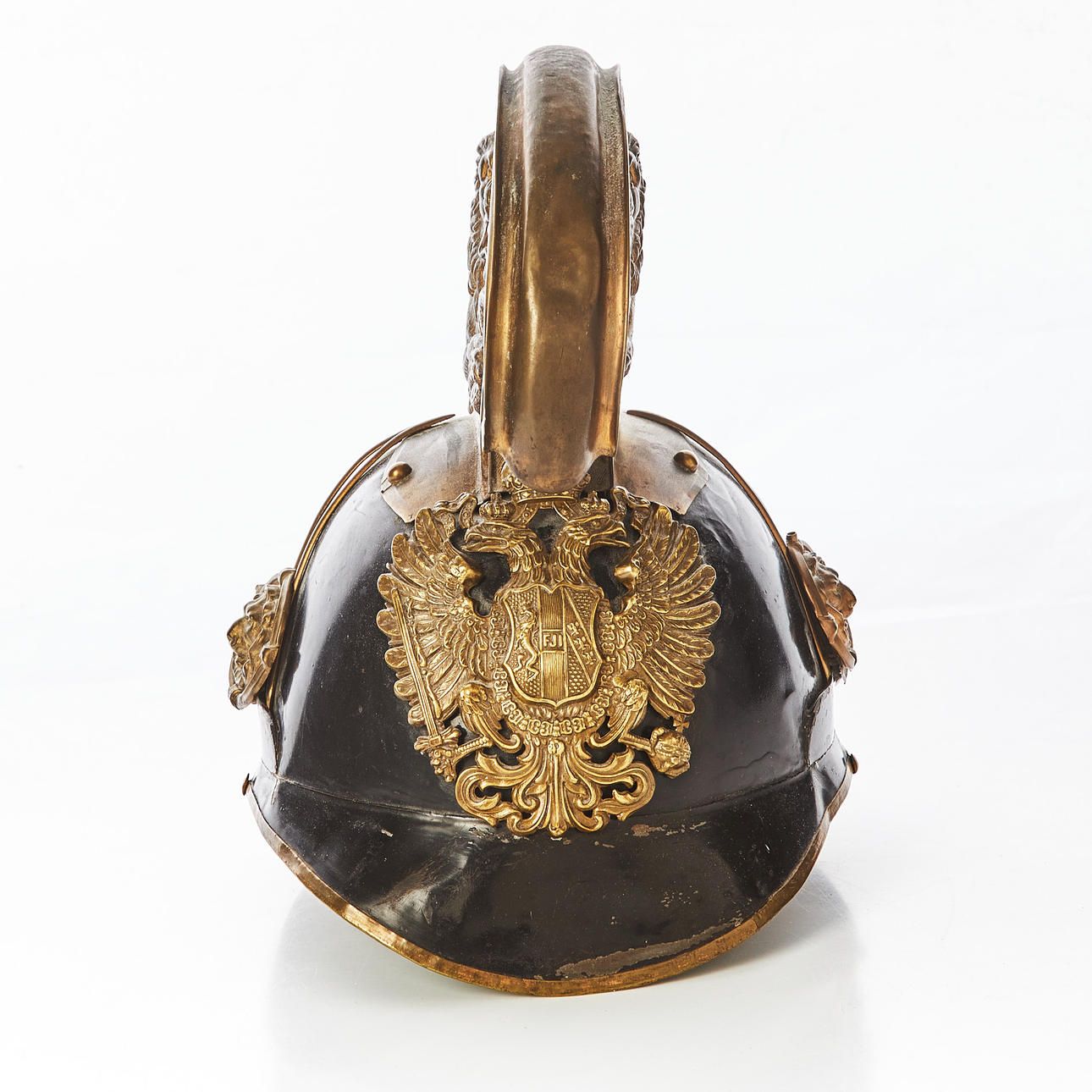 Helmet plate in the form of double-headed eagle, comb with decoration of lion and snake, height approx. 28 cm.