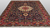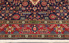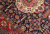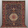 Main field with dark base color, center medallion and decor of Stylized vegetation. Main border with red base color and decor of flora and vegetation.
