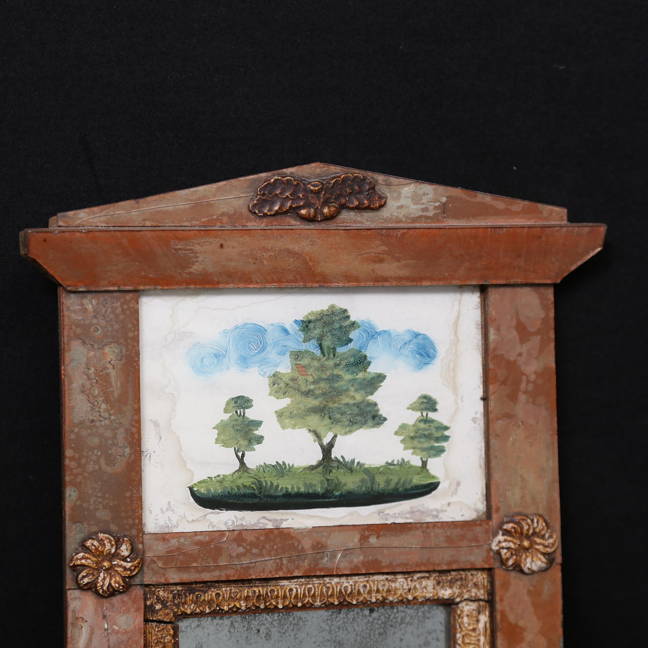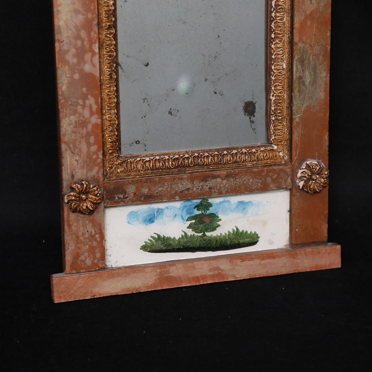 So-called glass master's mirror. Height approx. 54 cm. Width approx. 27 cm.