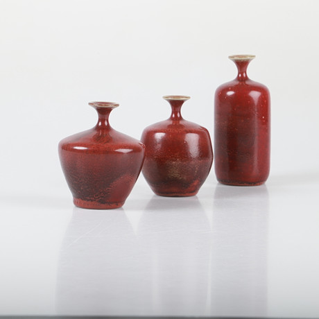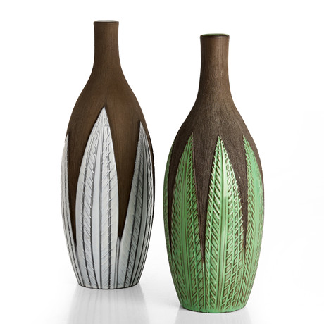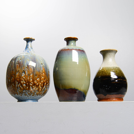 ISAK ISAKSSON. A set of 2 vases, glazed stoneware, signed Isac 80 and Isac.