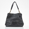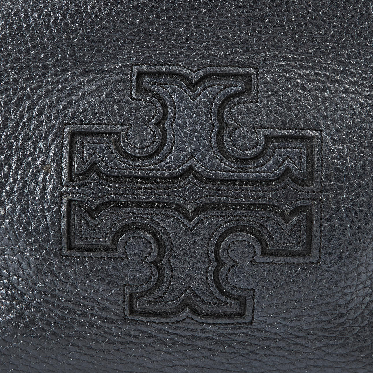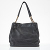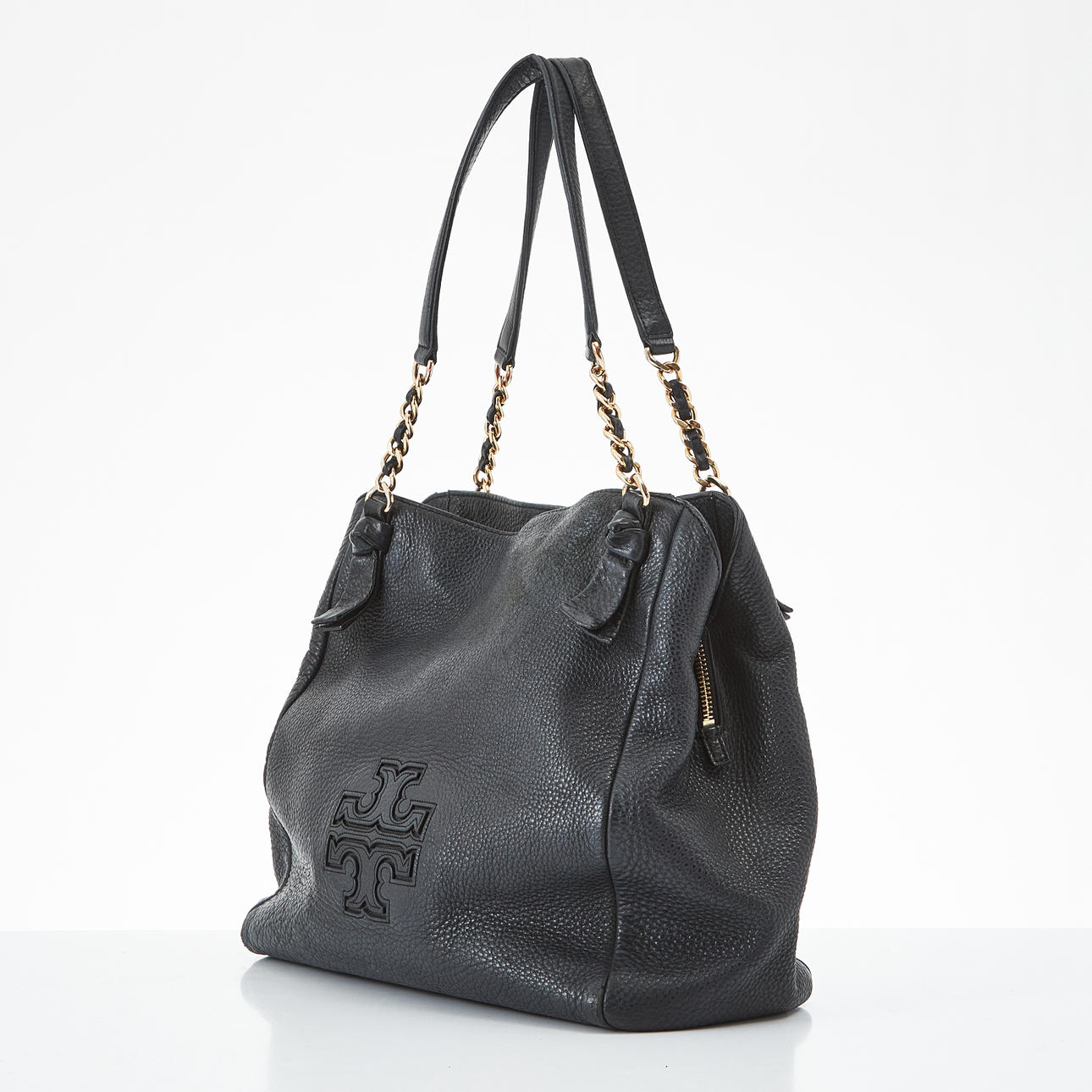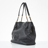 Handbag in black leather, details in yellow metal, magnetic clasp, sign marked “Tory Burch” on the inside, 32x30x16 cm.