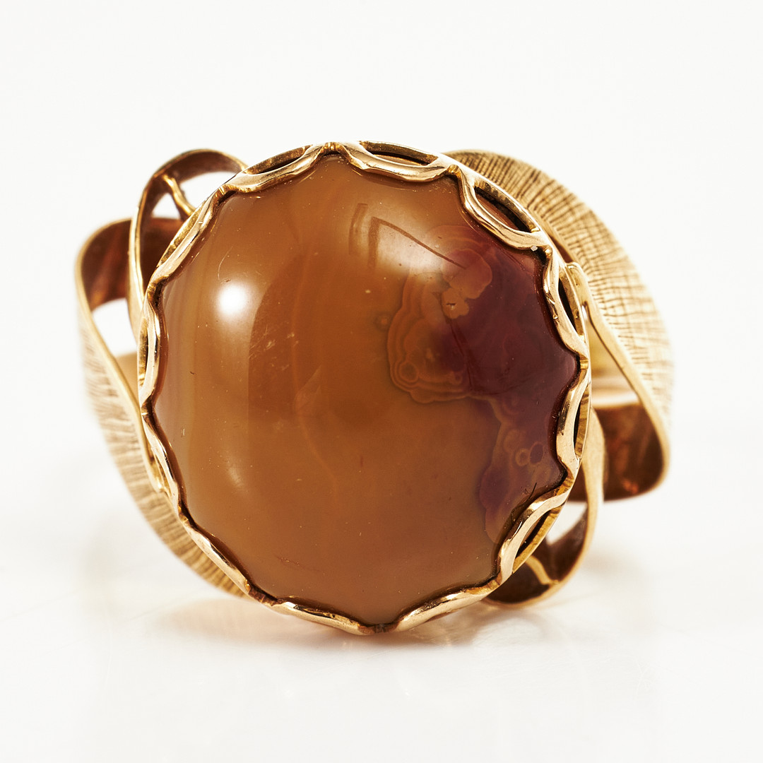 4146337. RING, 18k gold, cabochon-cut agate.