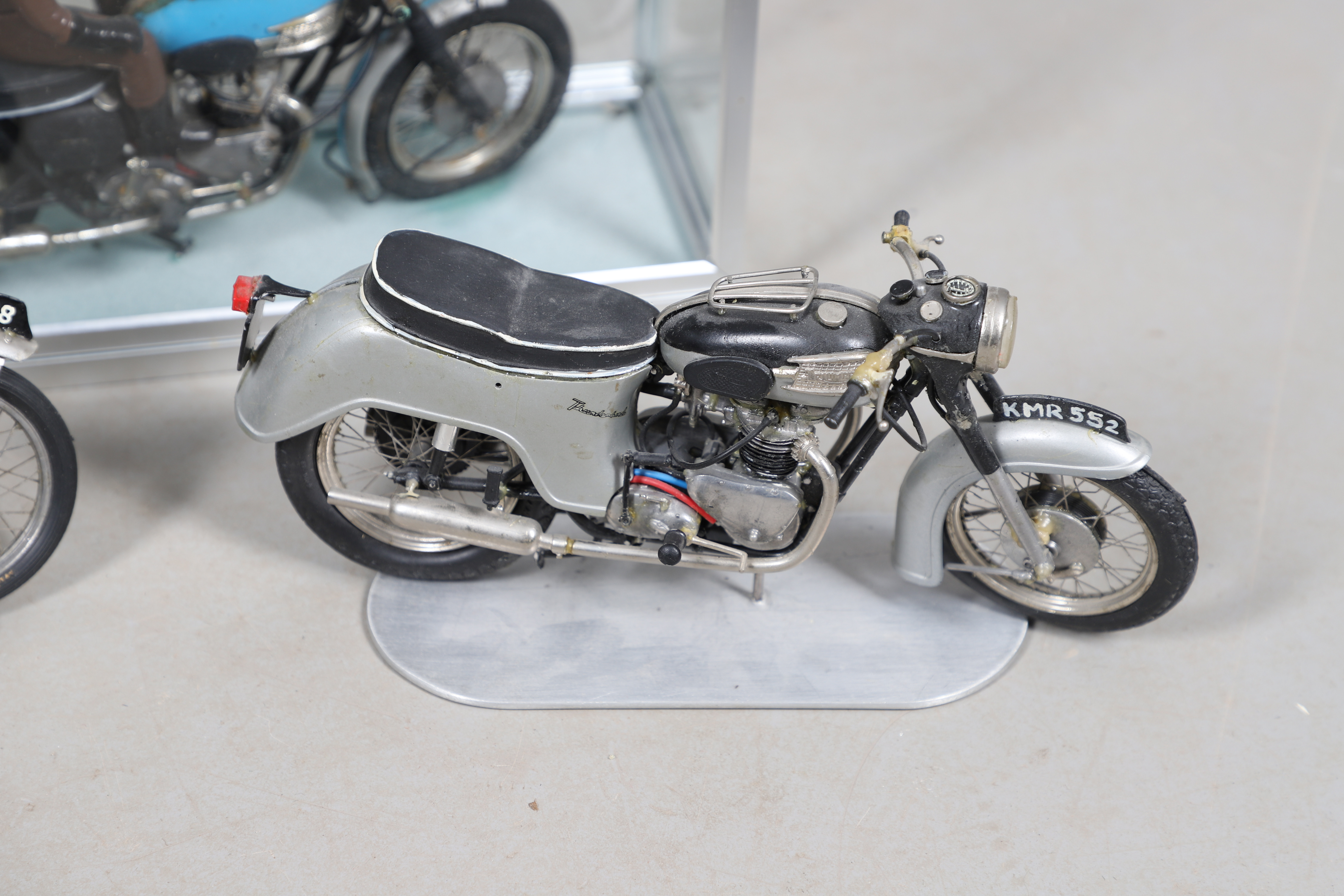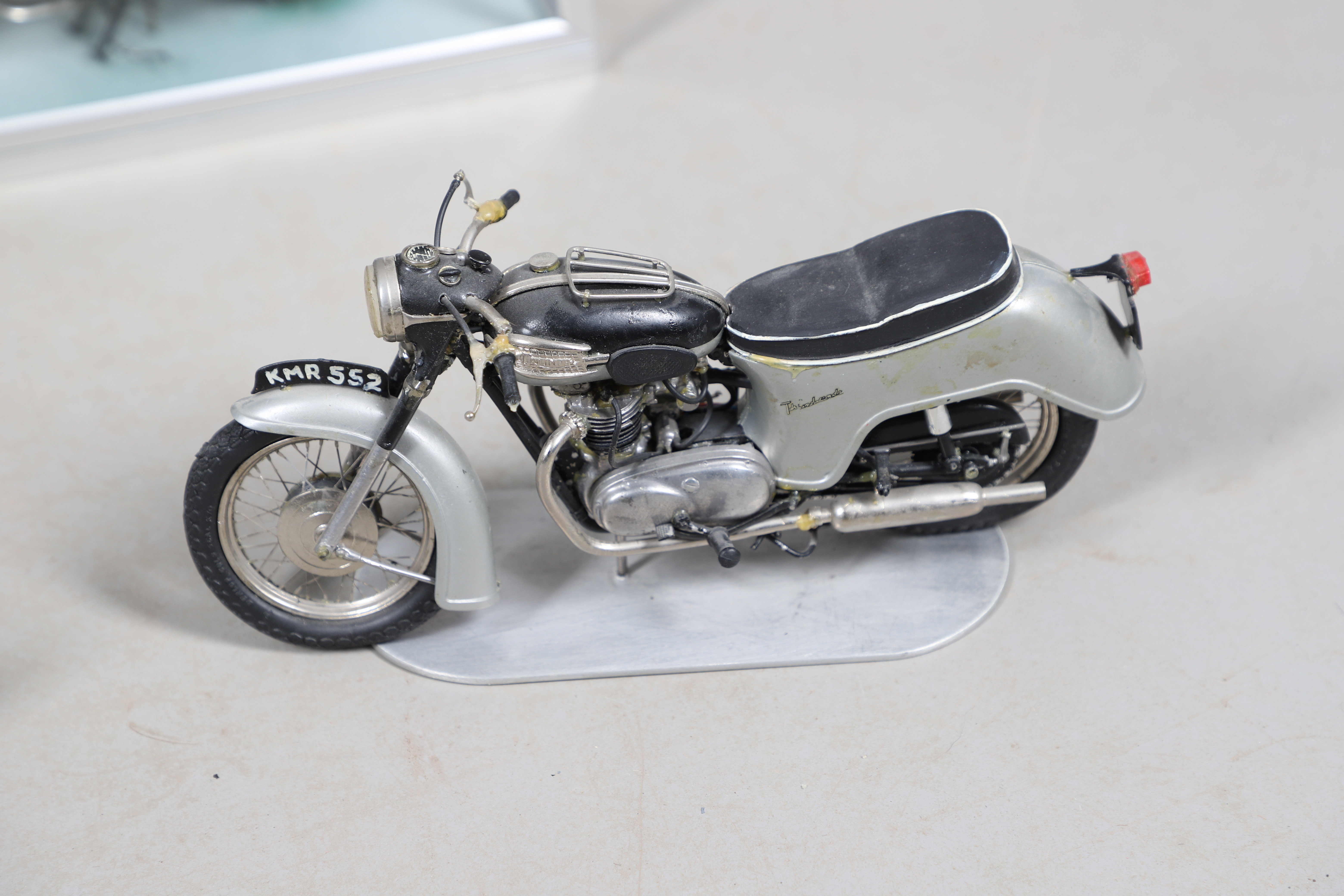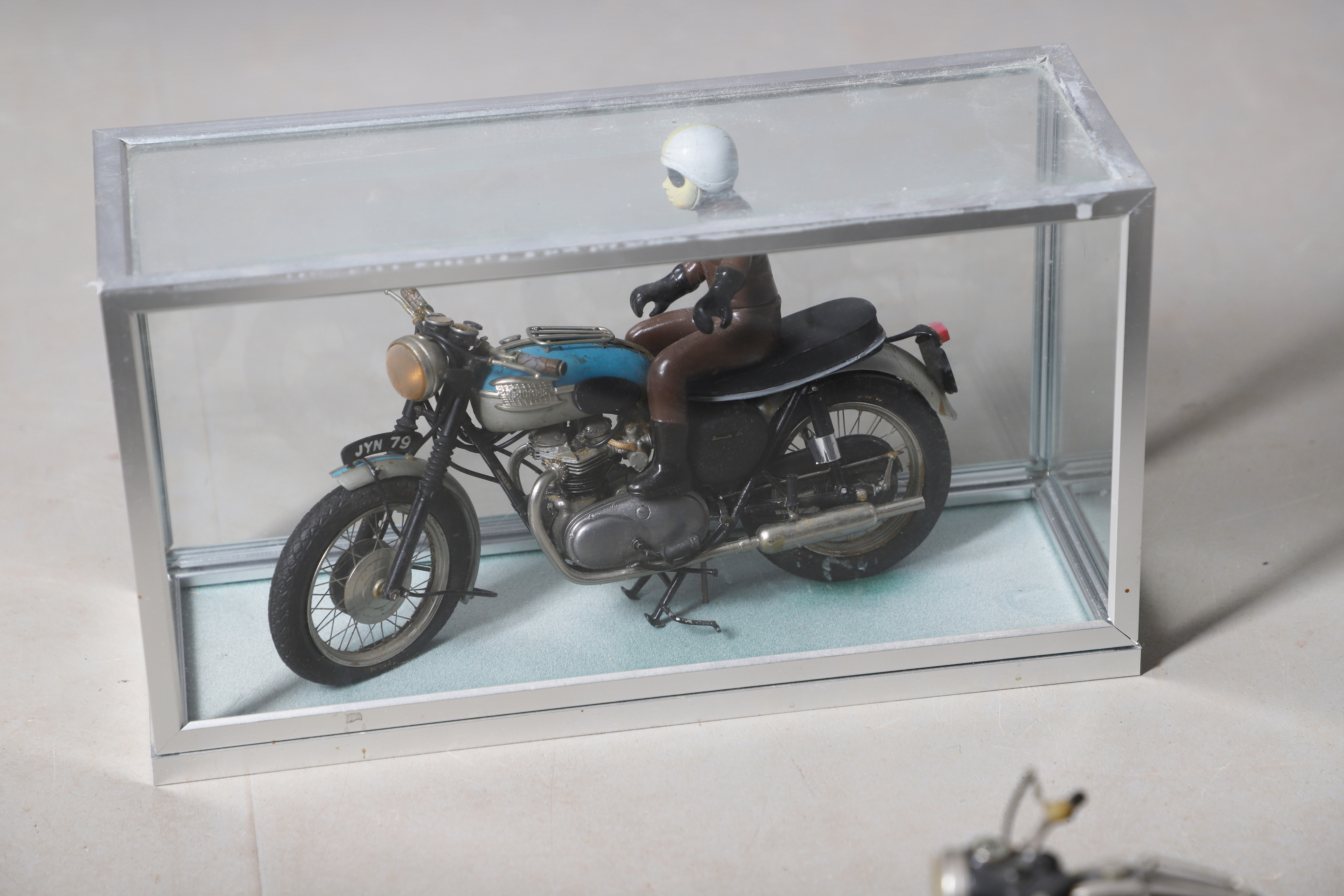 4147911. THREE SCRATCH BUILT MODEL MOTORCYCLES.