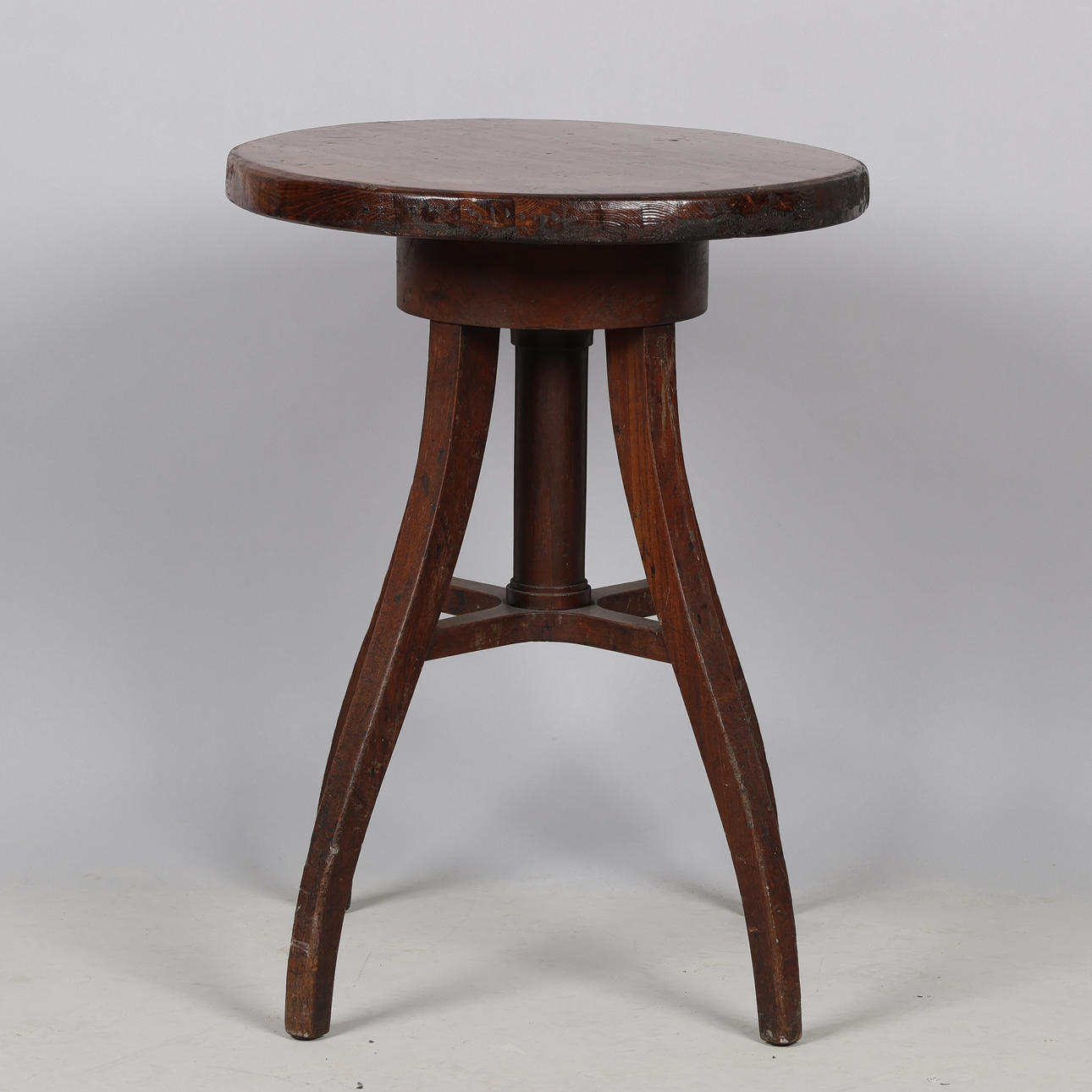 Age and use patina, including marks and scratches. Appears with instability at the countertop when the height is raised.