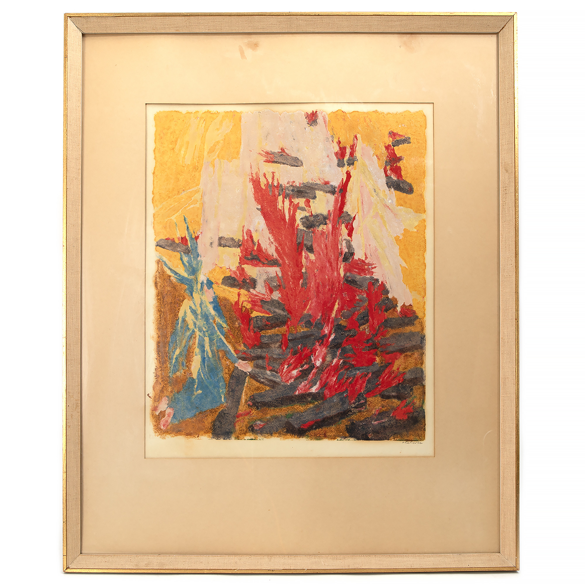 4150337. HERMAN TALVIK. Fire, mixed media on paper, signed.