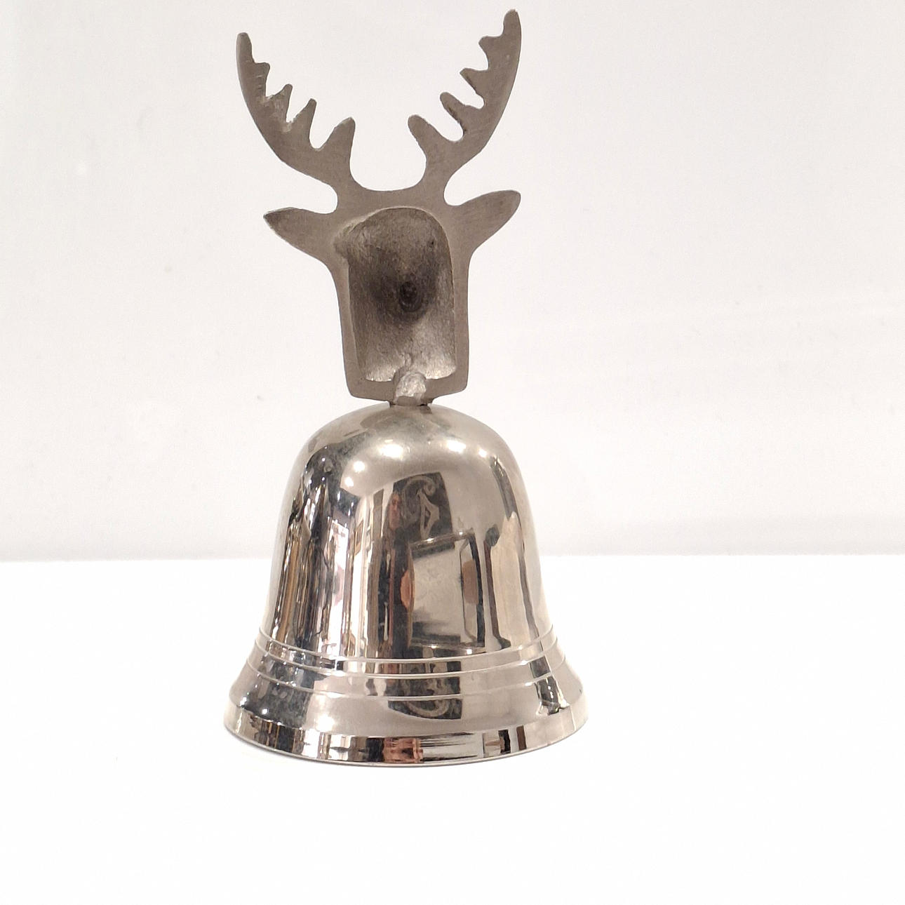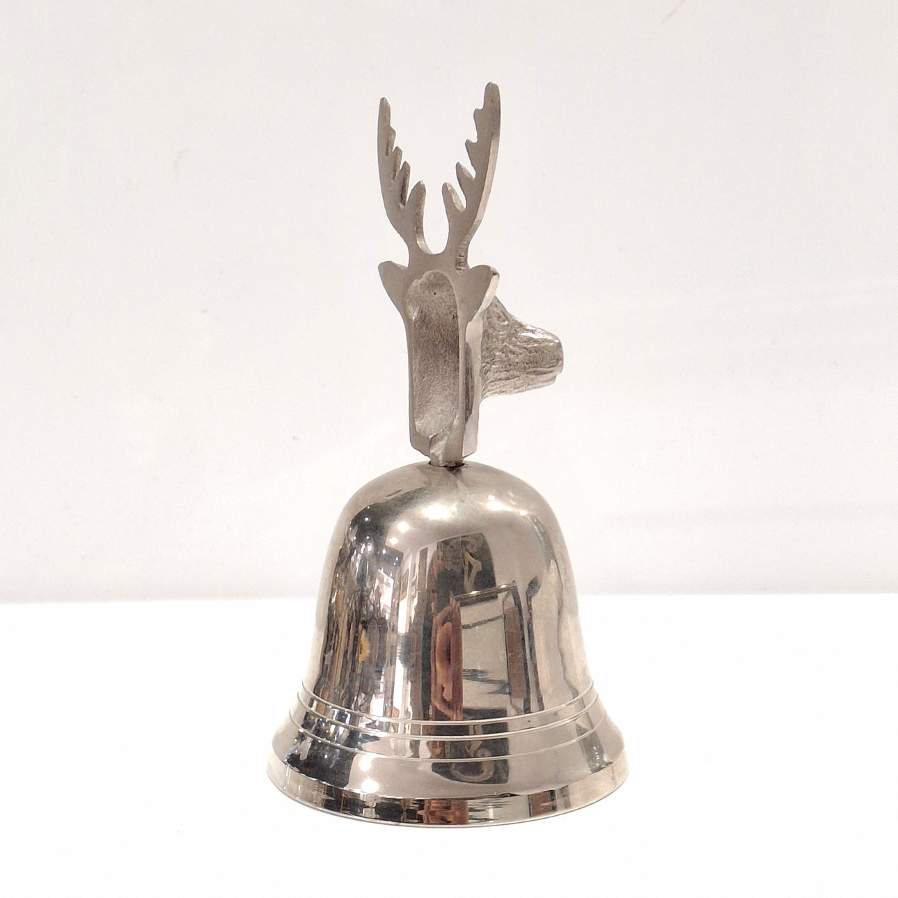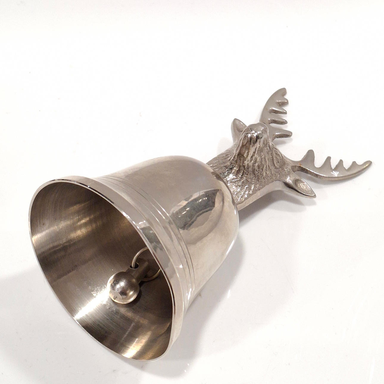 Table bell with deer head in silver alpaca.