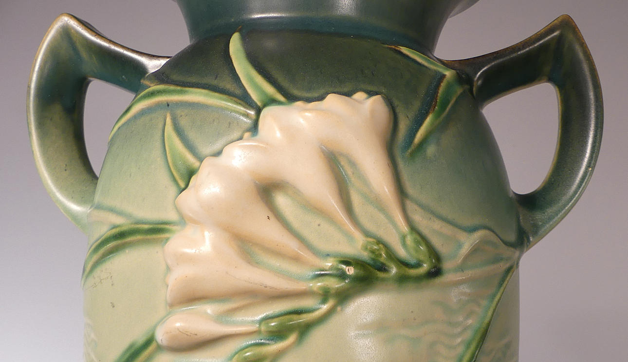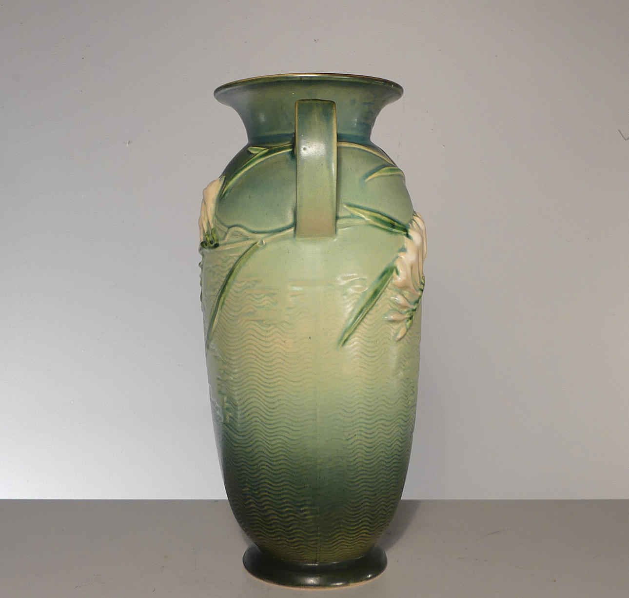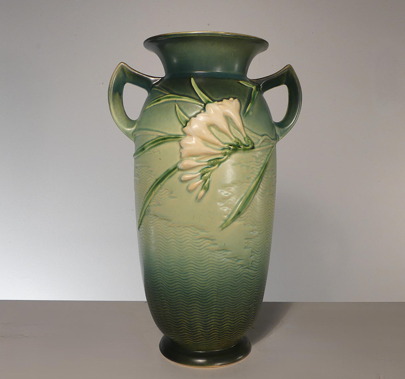 Green decor with freesia flowers in relief. Marked 128-15. Height 38 cm.