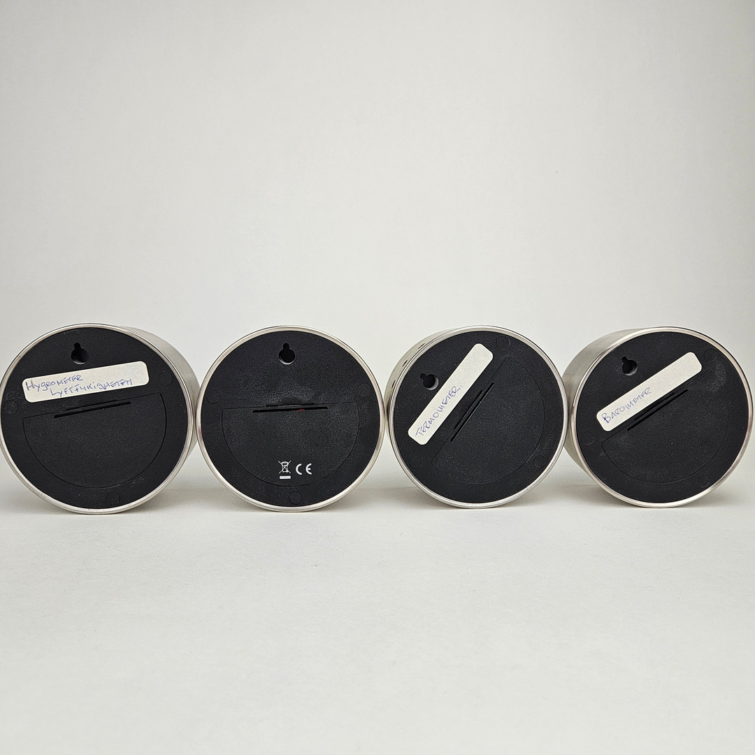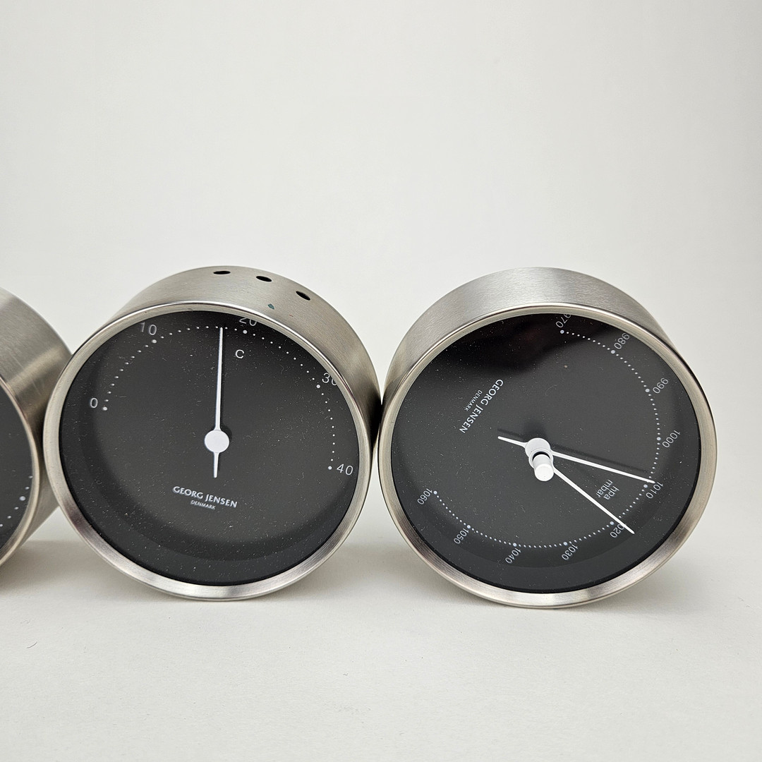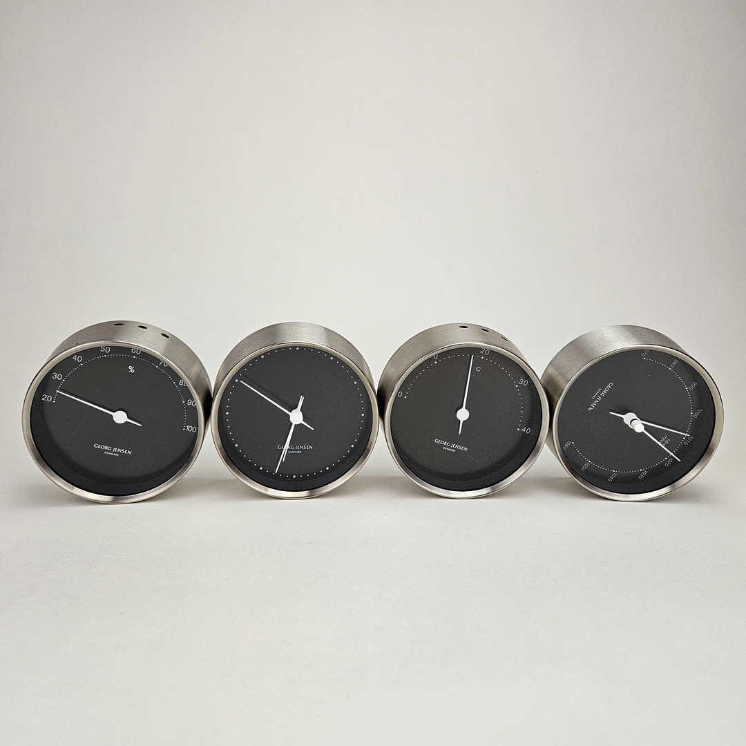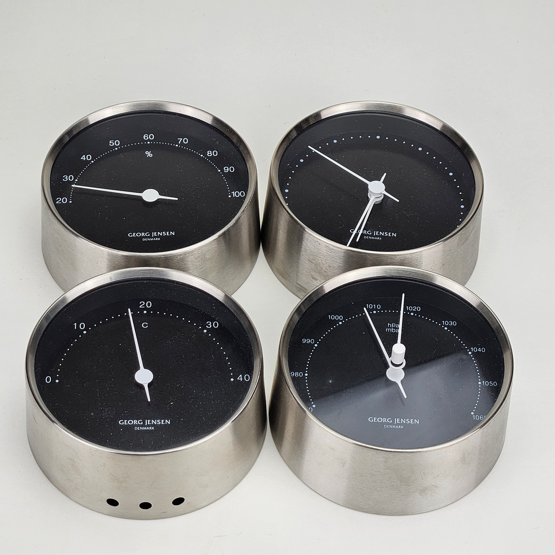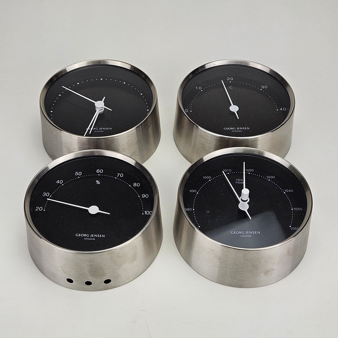4154400. HENNING KOPPEL. Wall clock, hygrometer, thermometer and barometer, Georg Jensen, Denmark.