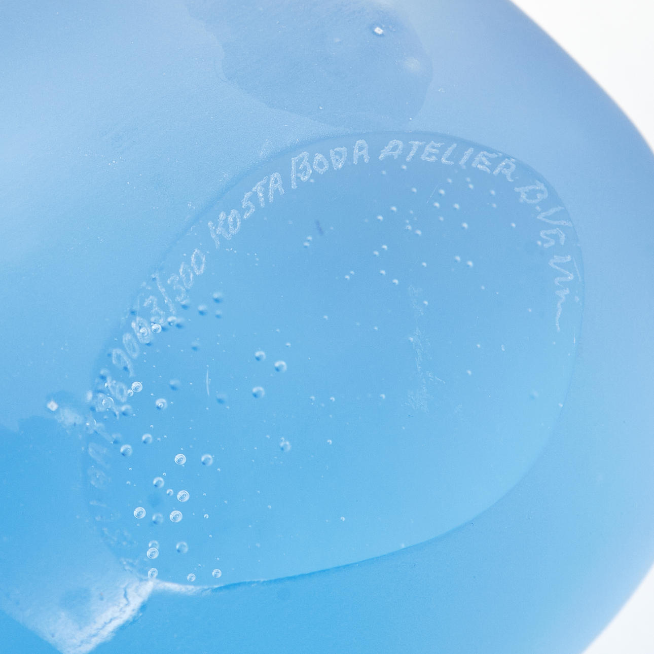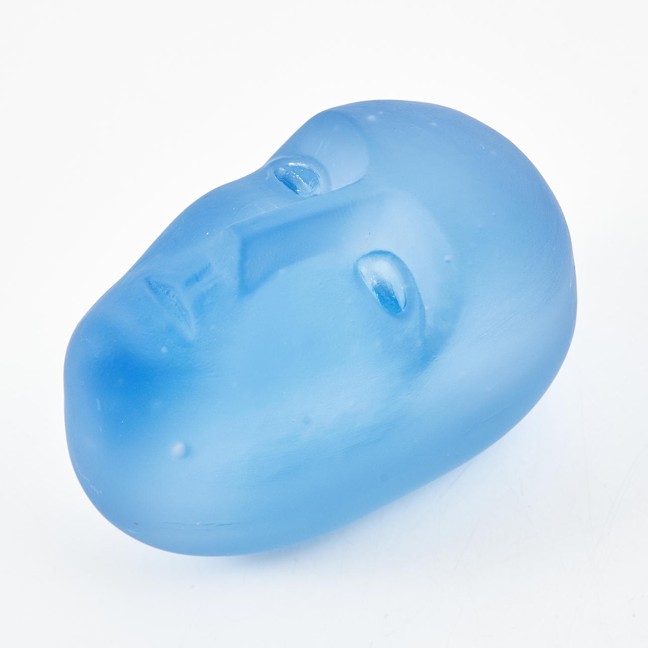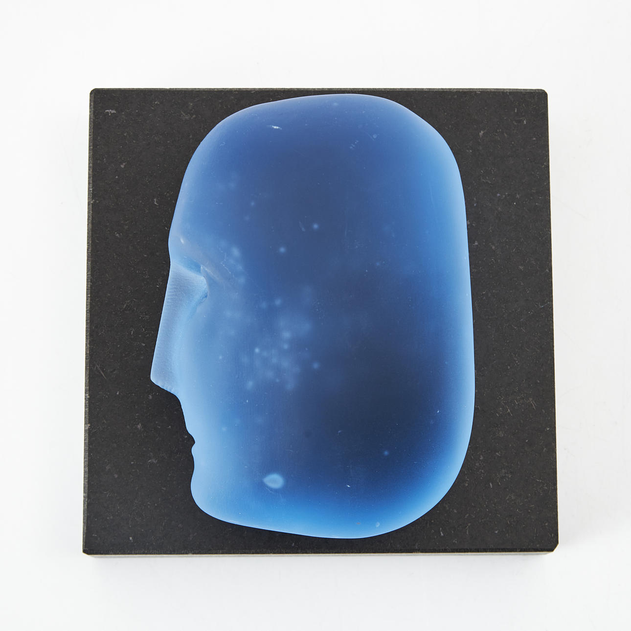 Sculpture in the form of a head in blue glass, edition of /300, BBVAAT, 969003/ 300, Kosta Boda Atelier, B Vallien, height incl plinth approx. 11.5 cm, 15x15 cm.