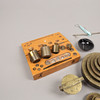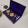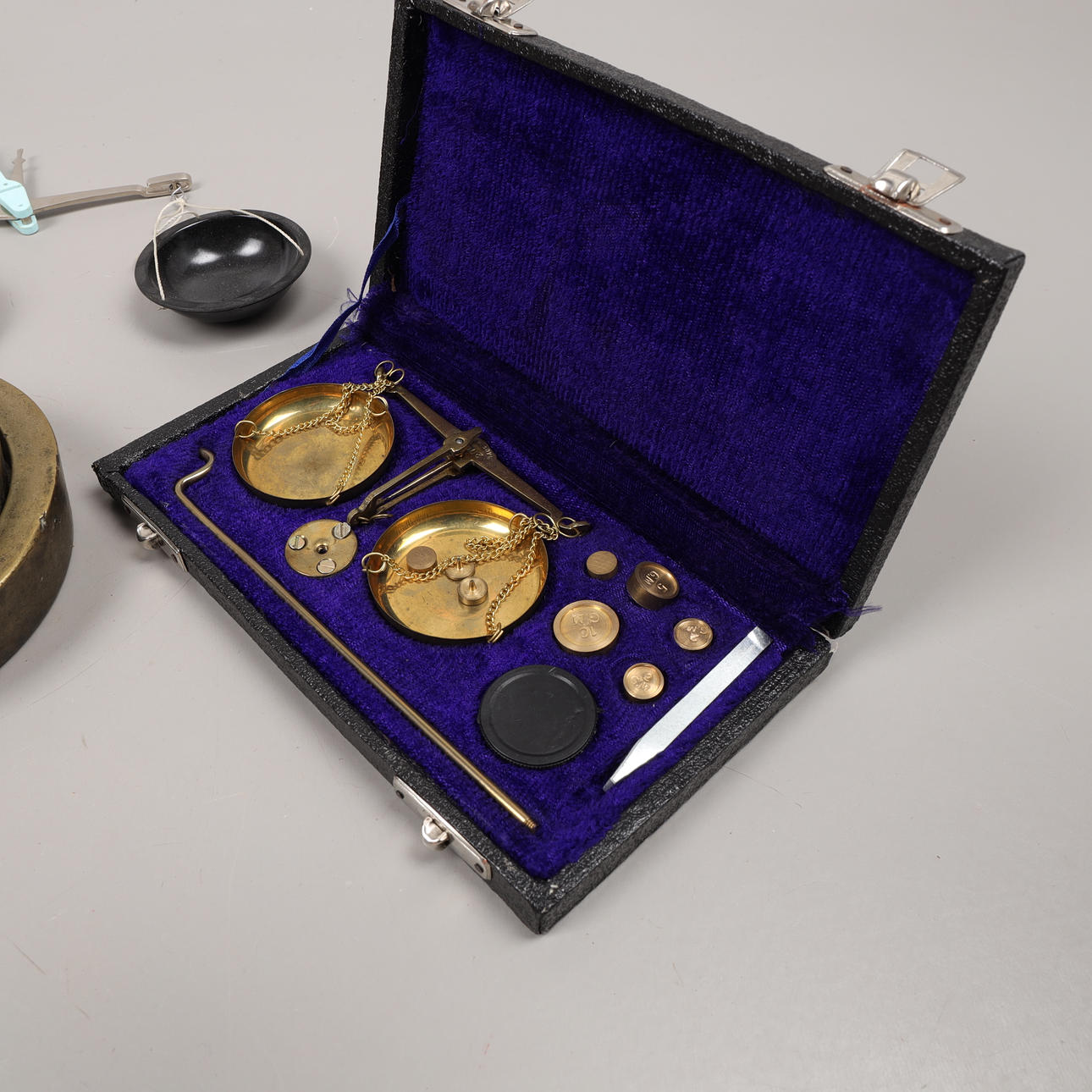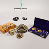 Gold scale with weight sets in shatull.