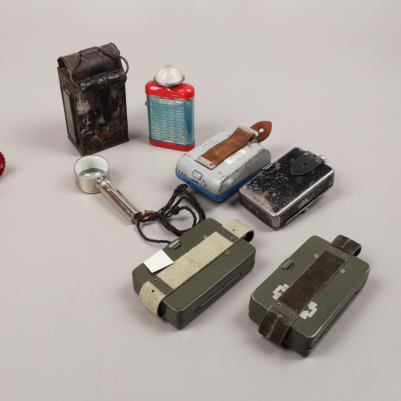 Flashlights, loupe with lamp, lantern, 8 pcs.