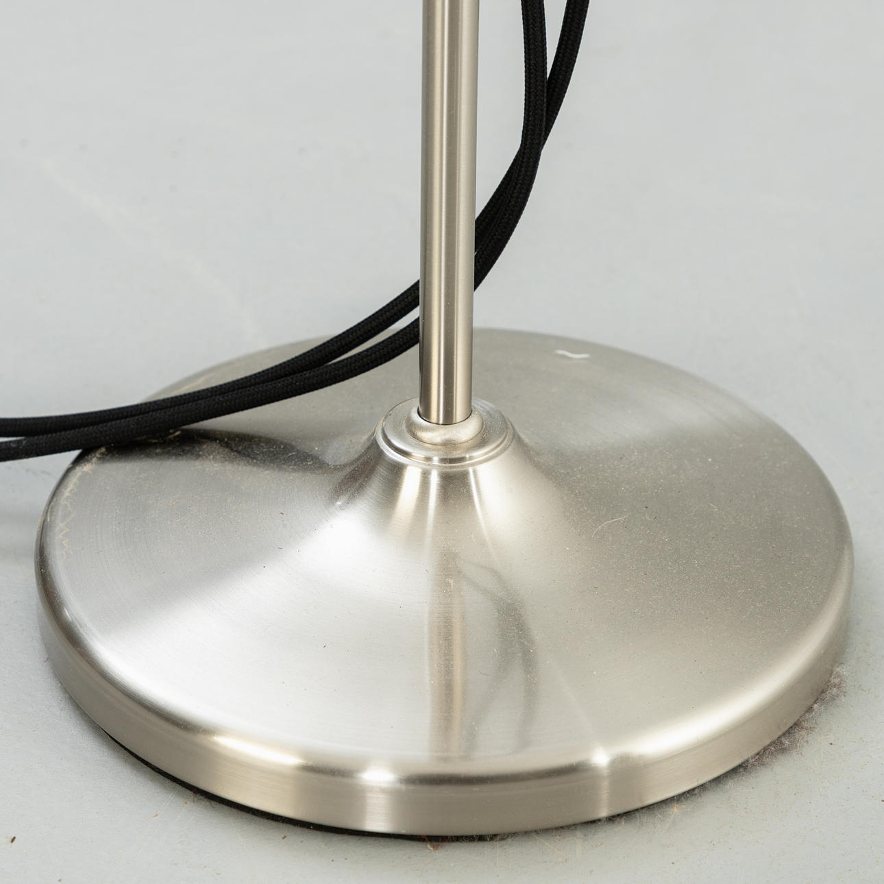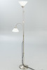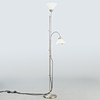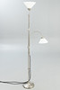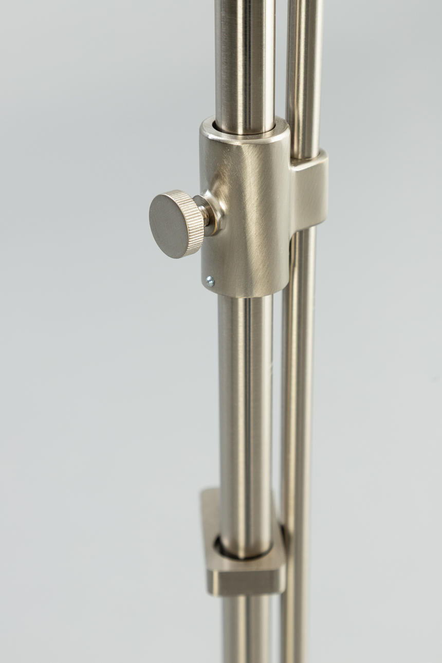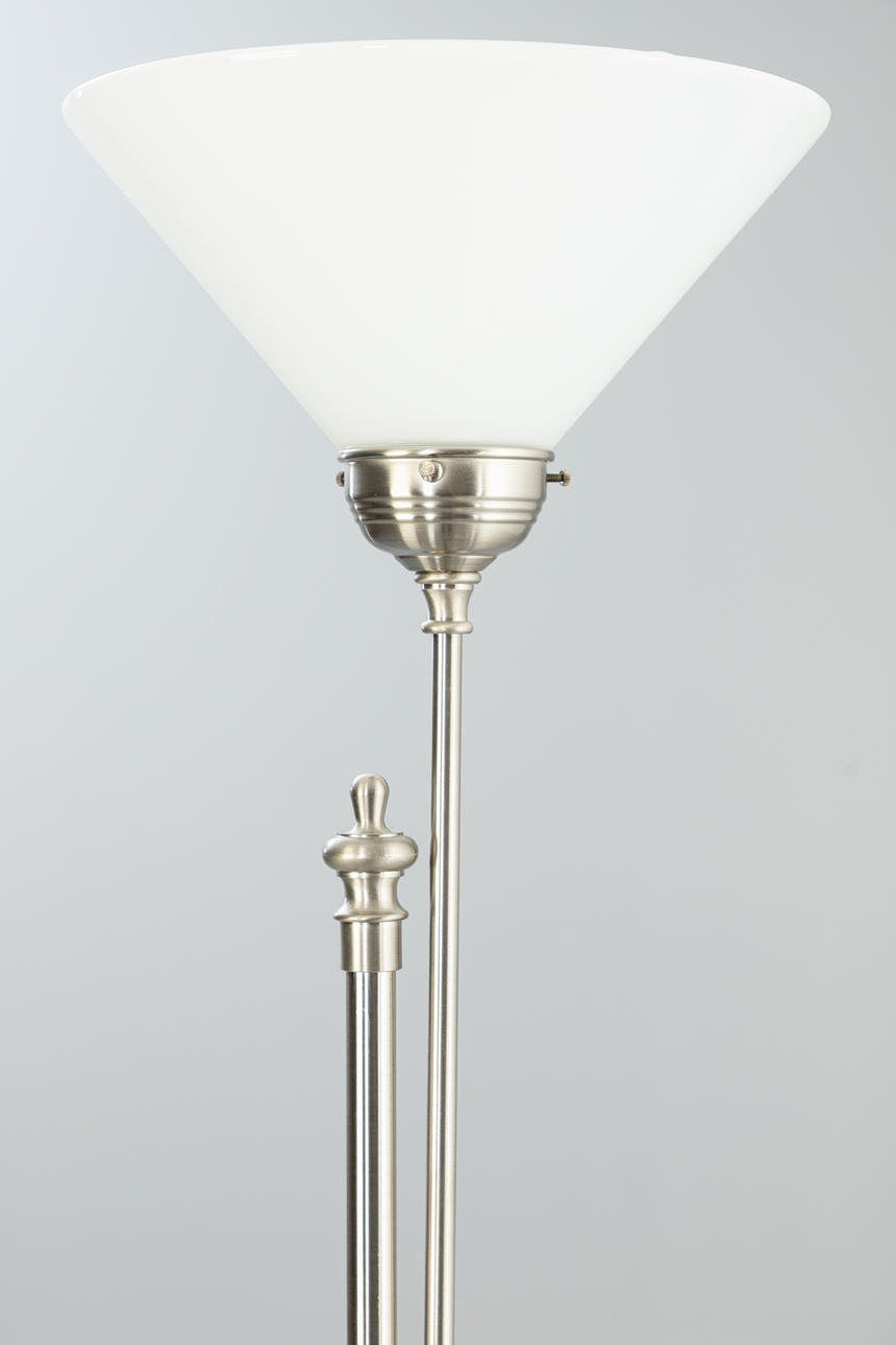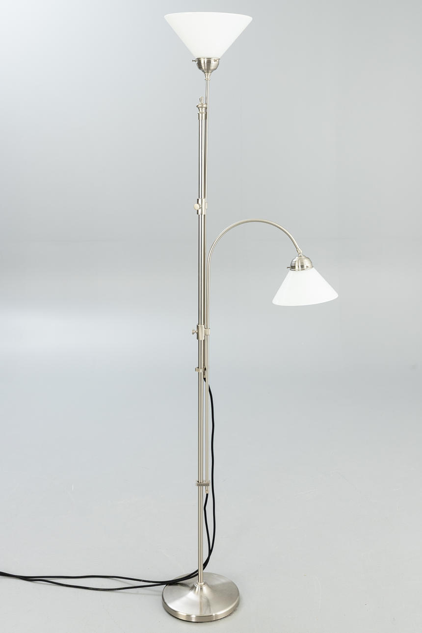 Nickel-plated brass 2 adjustable lamp arms. Lampshades in opal glass, white.