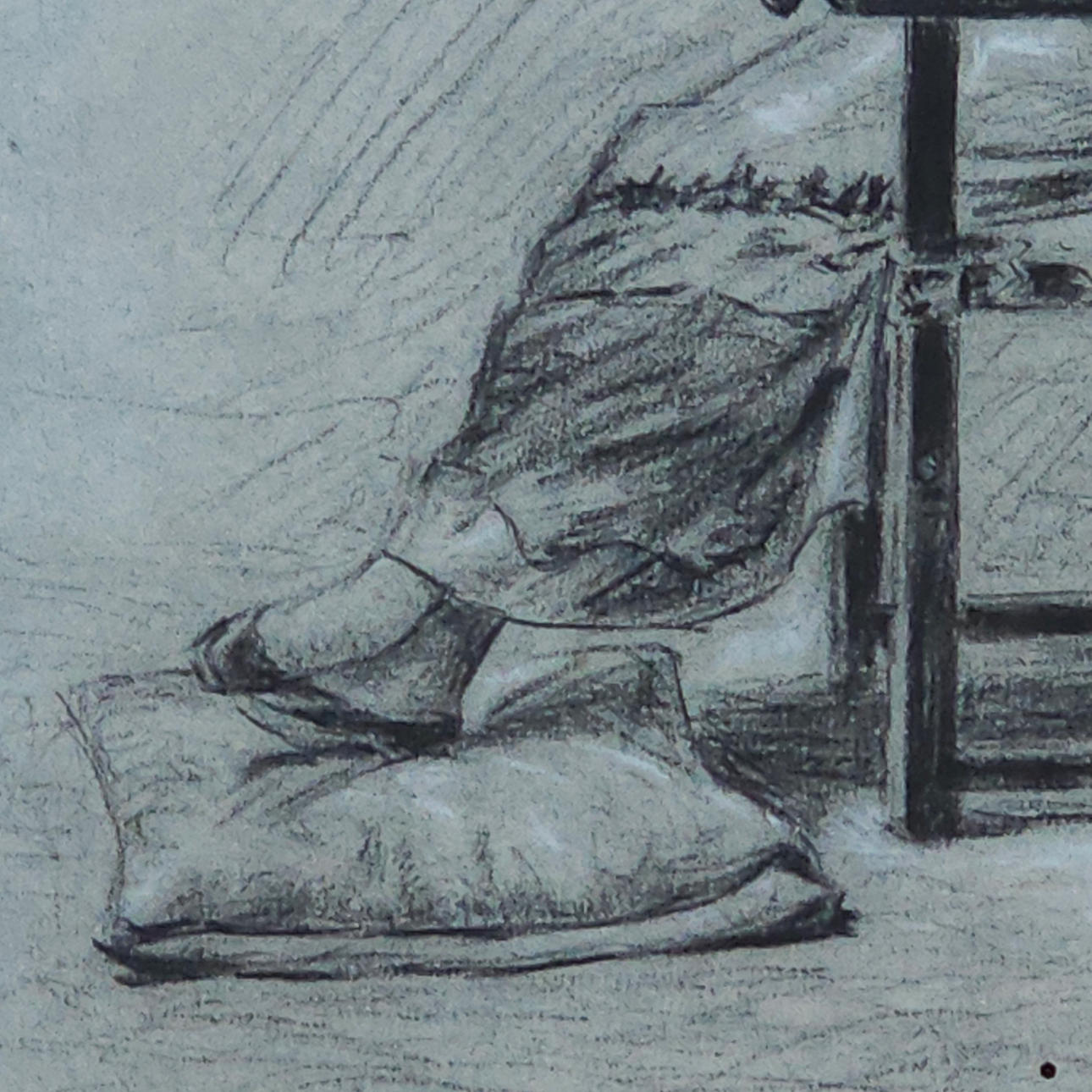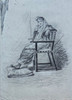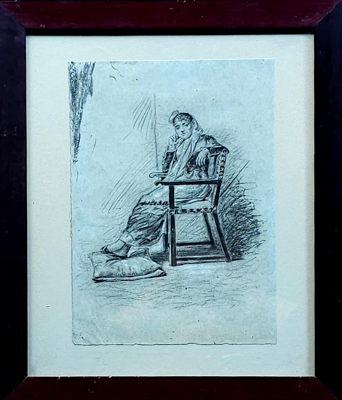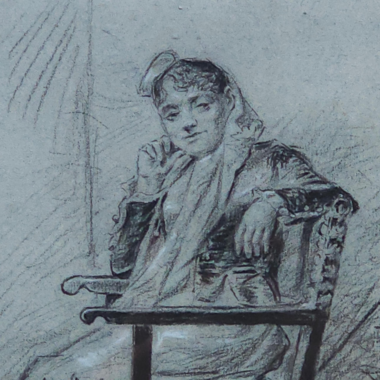 ANÓNIMO. Seated lady, charcoal drawing on paper.