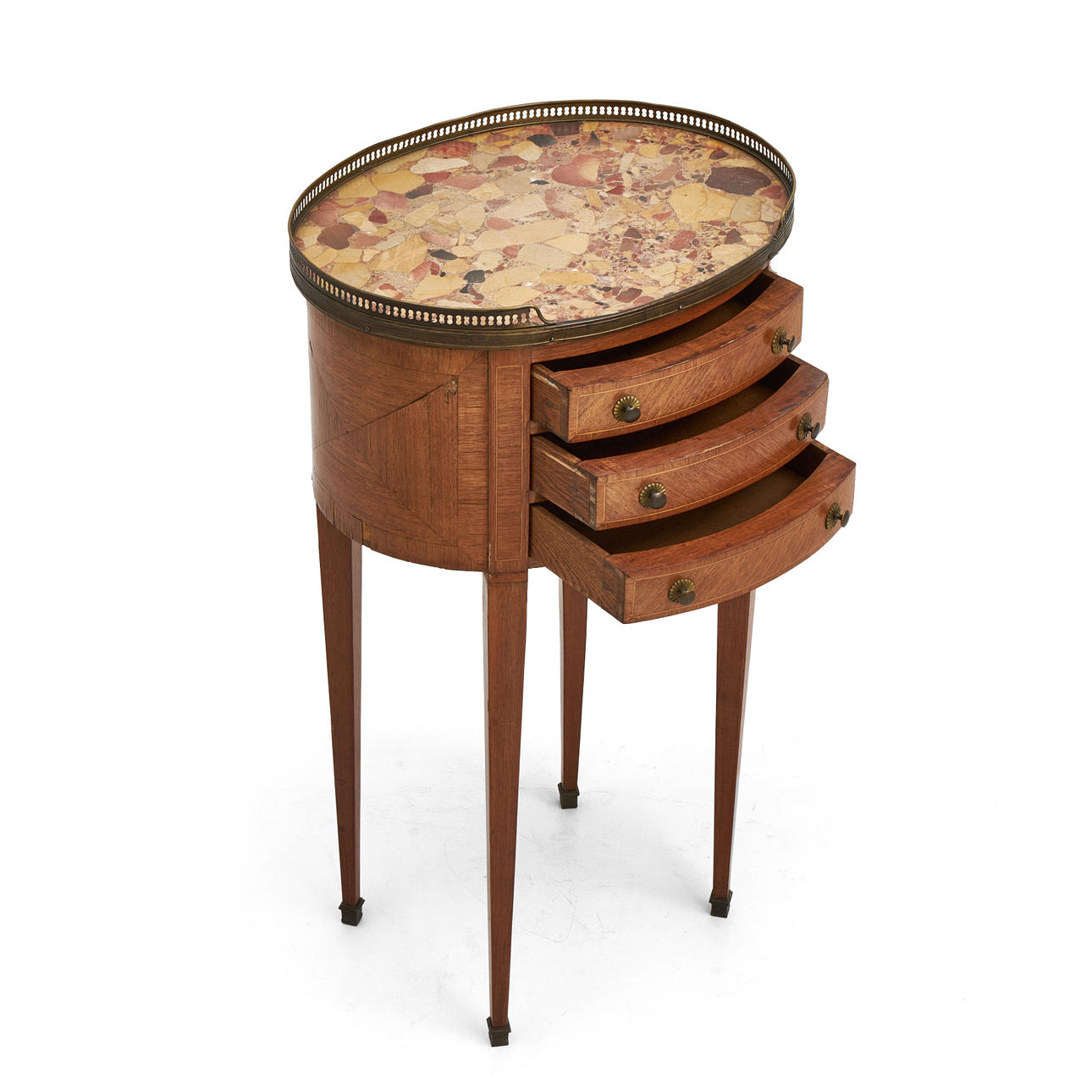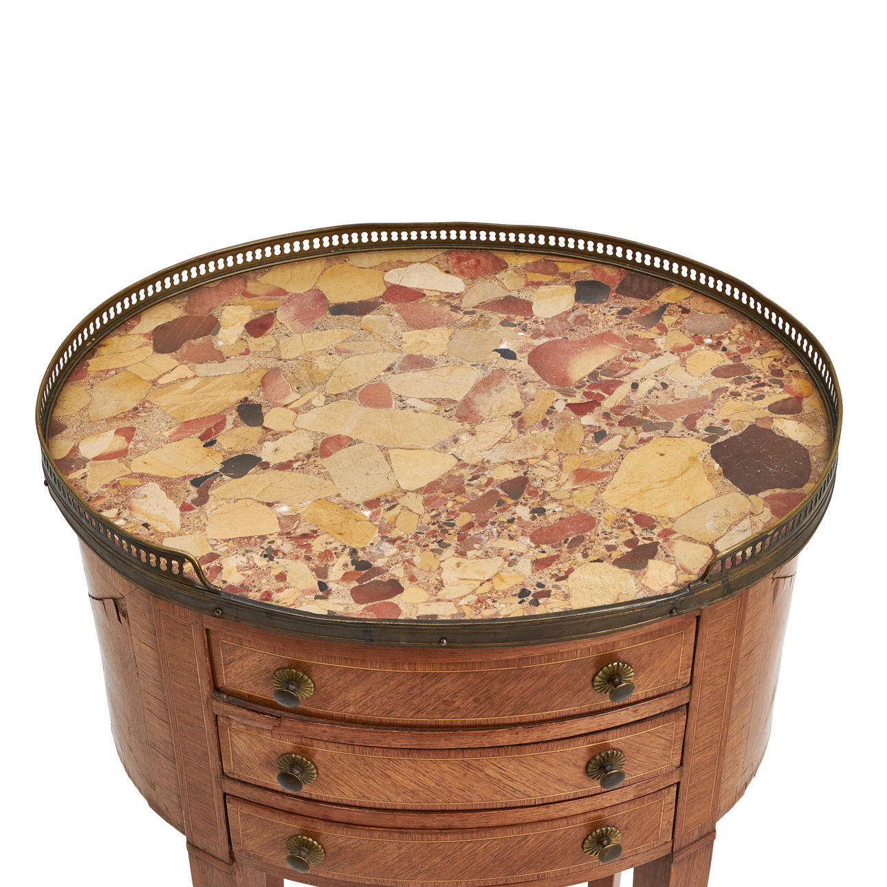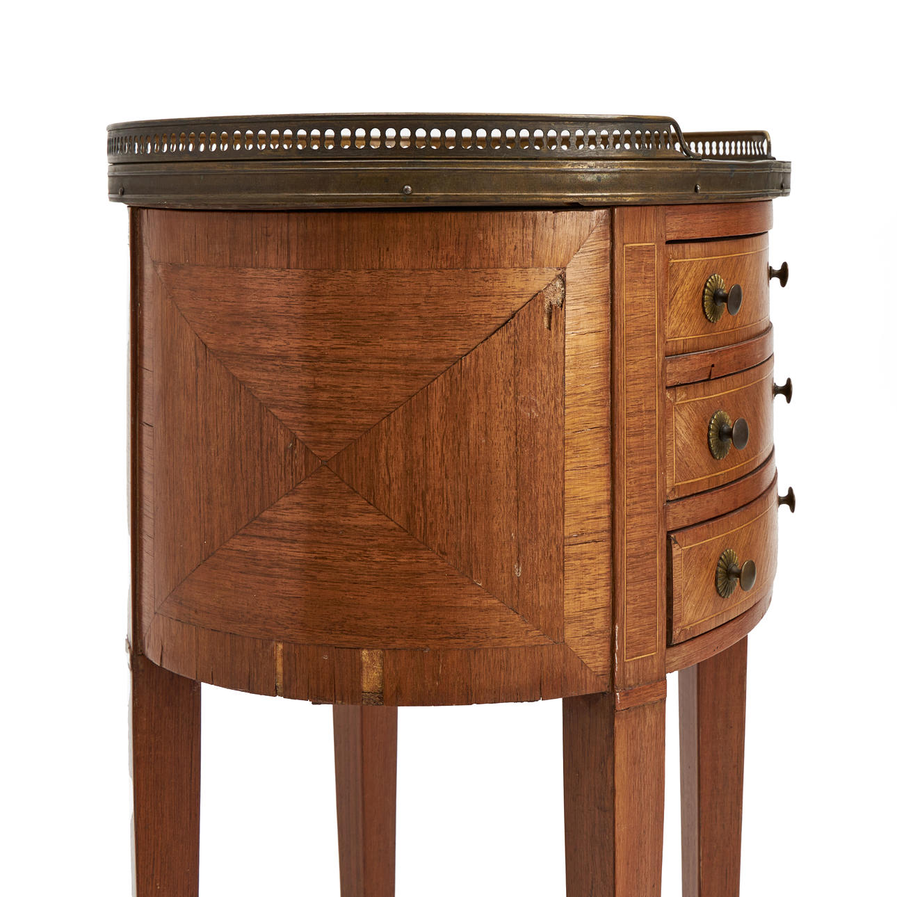 Penetrated brass sarge, 3 drawers, brass dipping shoes.